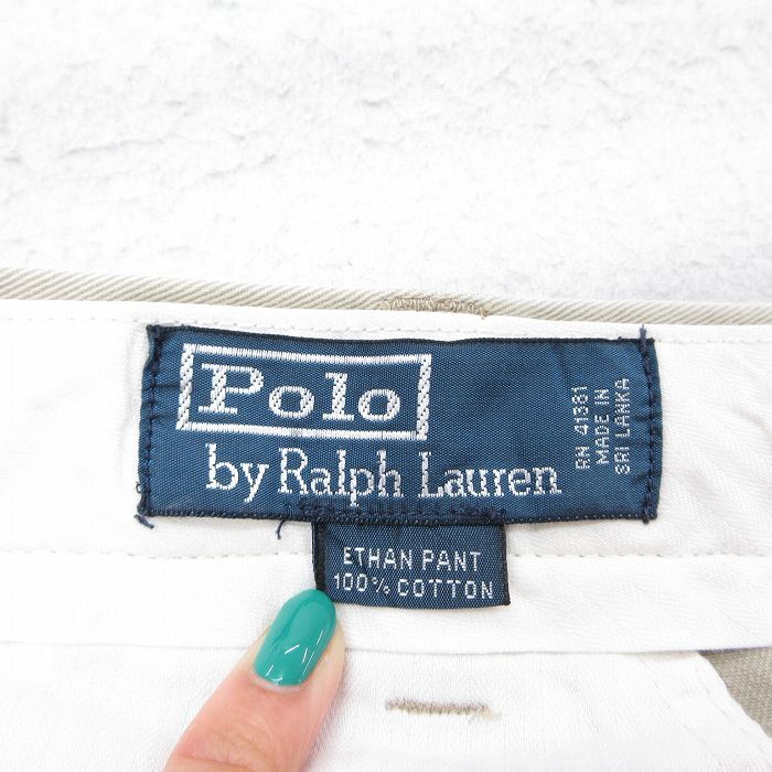 【商品名】 W35★古着 ラルフローレン ブランド パンツ メンズ 90年代 90s ワンポイントロゴ コットン 薄ベージュ