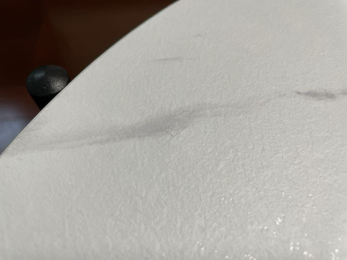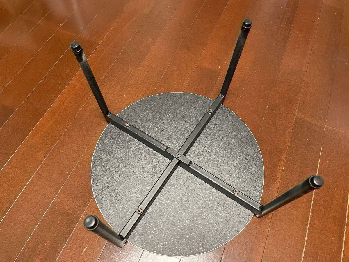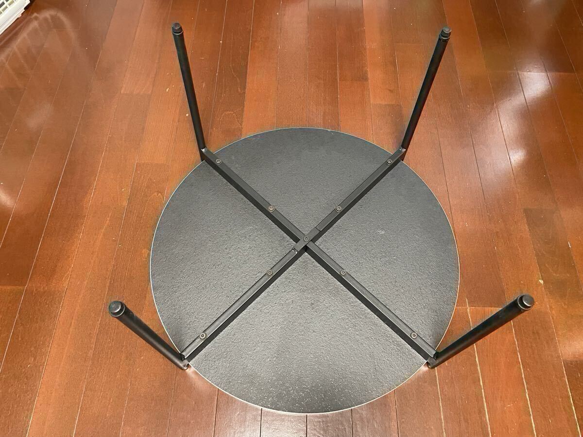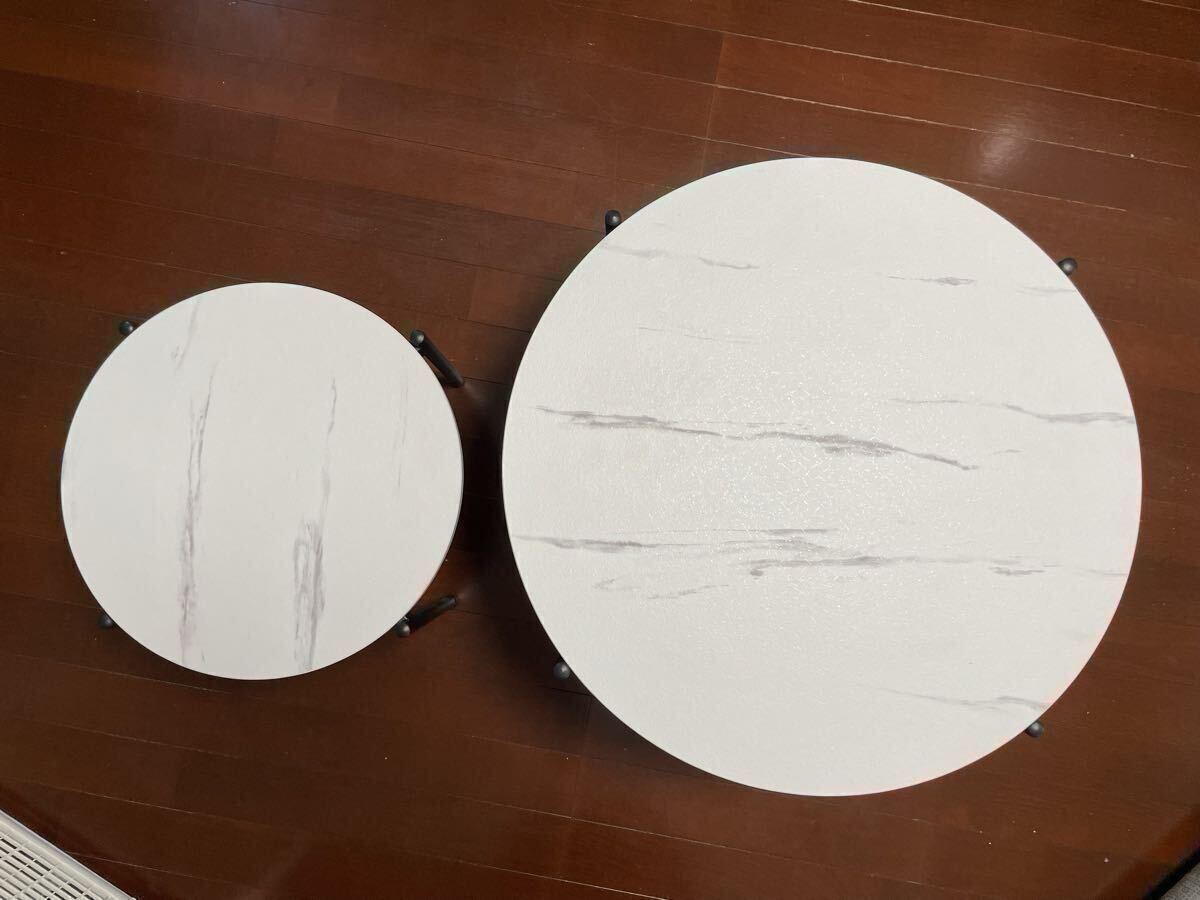 以下3年ほど前に購入した、円形ローテーブルです。天板はマーブルのデザインになってます。