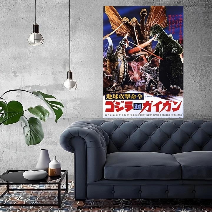 新品 ゴジラ ガイガン ポスター タペストリー 壁掛け パネル // 昭和 レトロ