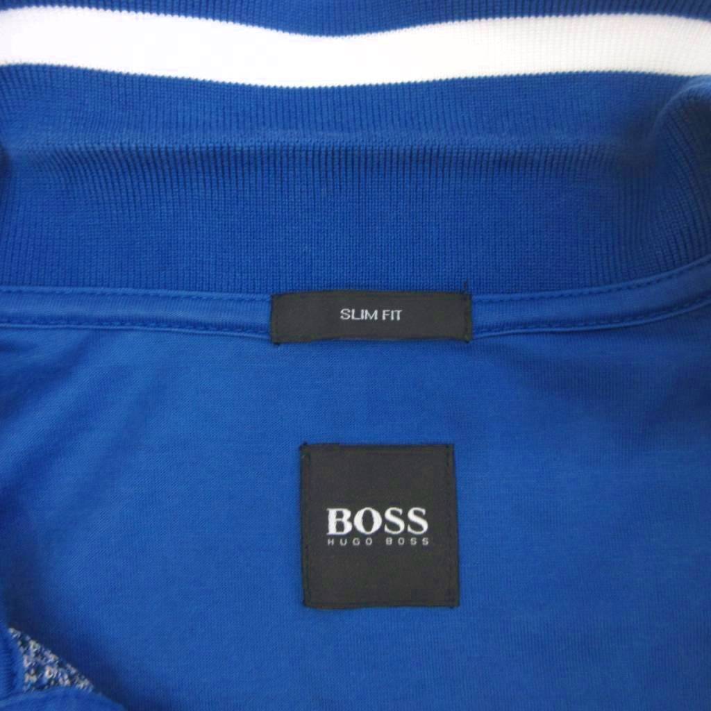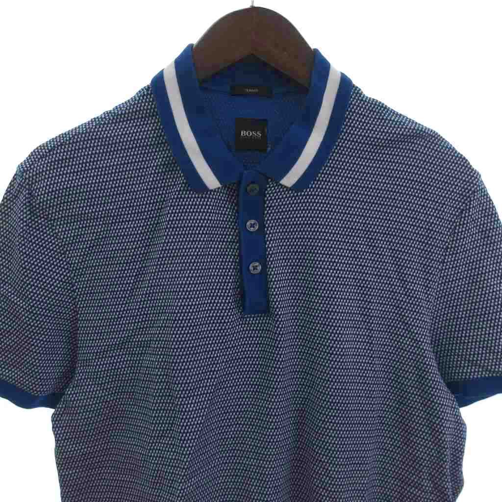 ヒューゴボス HUGO BOSS スリムフィット ポロシャツ 総柄 半袖 コットン 青 ブルー系 S メンズ