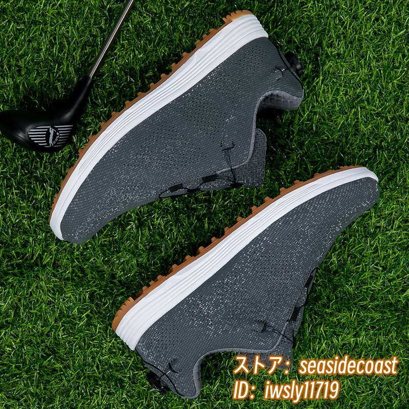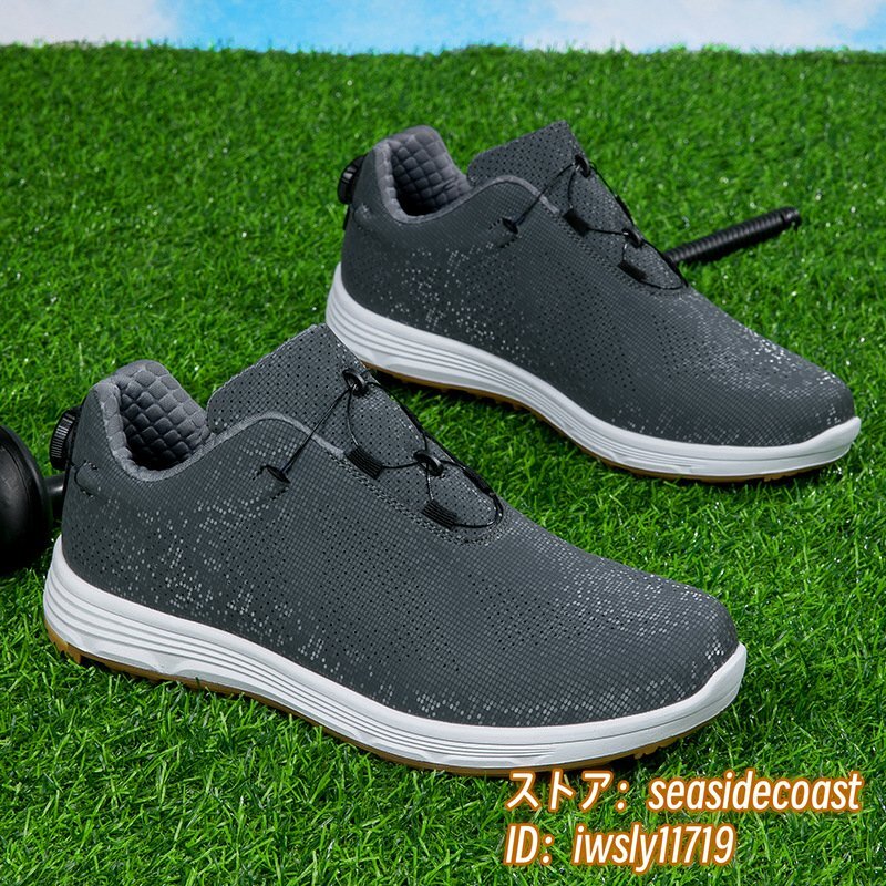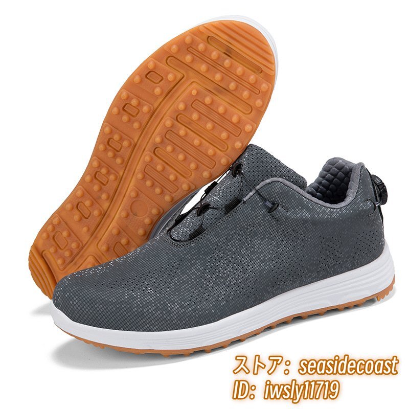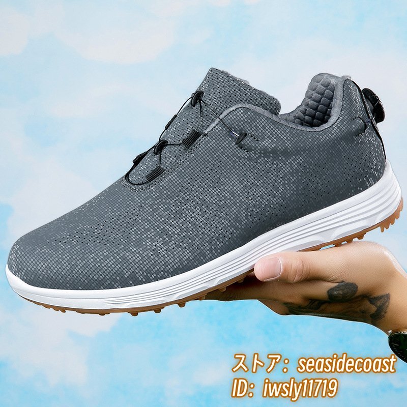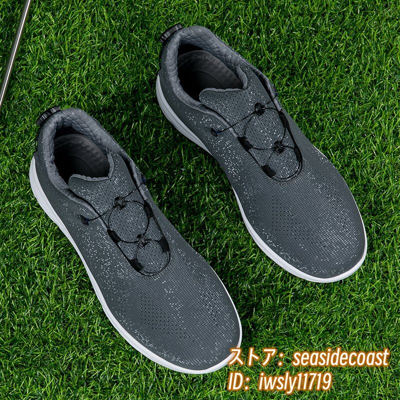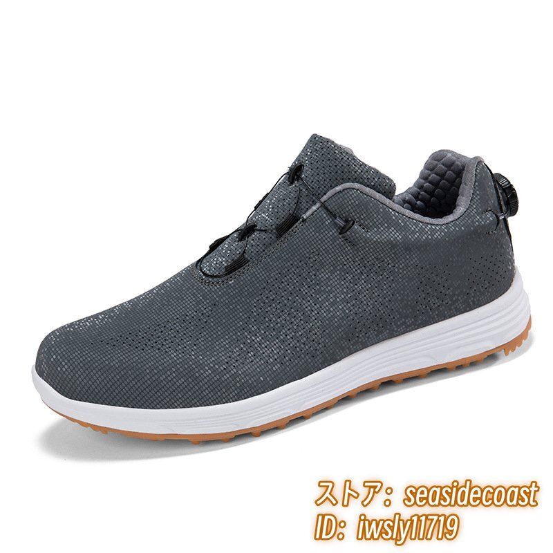 高級品◆GOLF靴 ゴルフシューズ 男女 スニーカー メンズ 運動靴 快適 防水 スポーツシューズ 耐久性 4E 幅広 カジュアル グレー 23.5cm