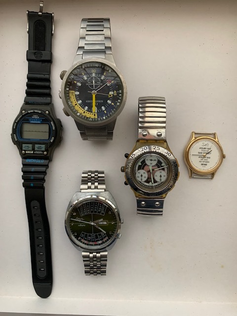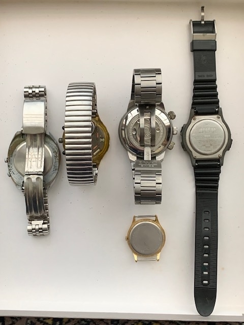 自動巻き・クォーツミックス5本です。 現状は全て動いておりません。 ジャンク品とのご理解をお願いします。 外観は大きな目立つ破損はないように見えます。 内部の状態不明、パーツの欠損、破損については未確認です。 保障なし、部品の欠損欠品、電池切れ、動作未確認、経年劣化、破損等があるジャンク品となります。 画像のものがすべてです。 当方時計に関しては専門外のため専門的な説明はできません。 これらをご理解の上ご入札をお願い致します。 ※ 前回落札者にいたずら入札されたため再出品となります。 |