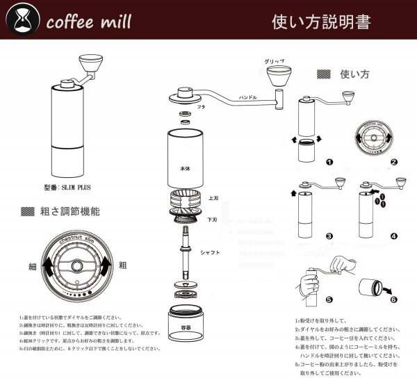 1.ブランド:TIMEMORE 型番:SLIM plus スリムプラス 臼:五軸CNC加工での55-58HRC硬さのステンレス 贈り物:ブラシ、収納袋 サイズ:16*4.2cm