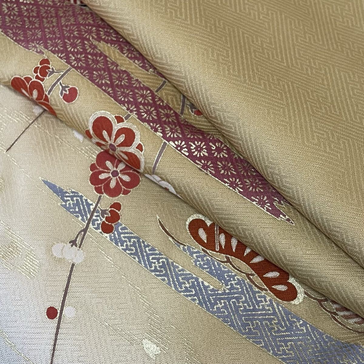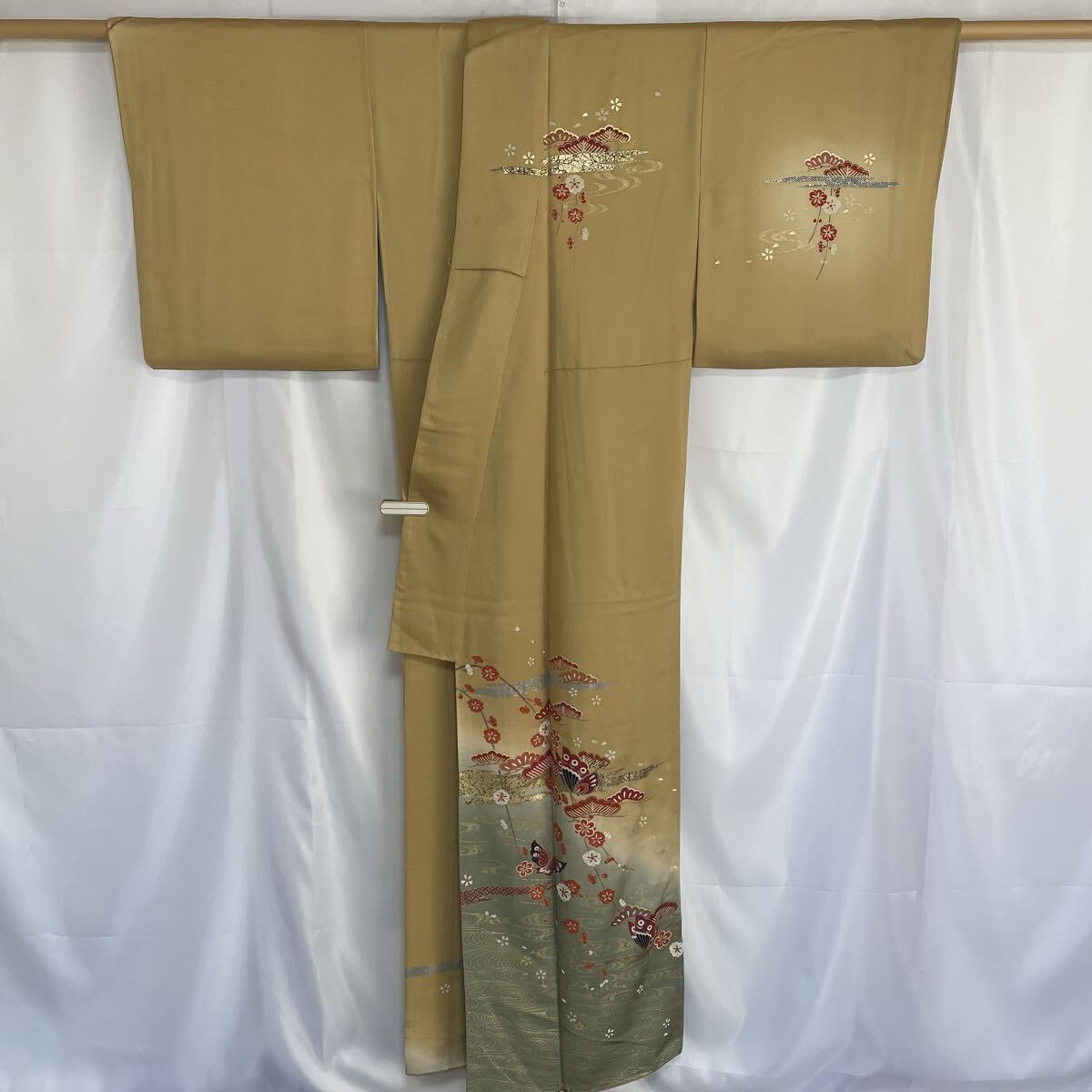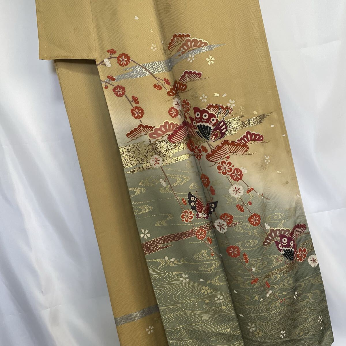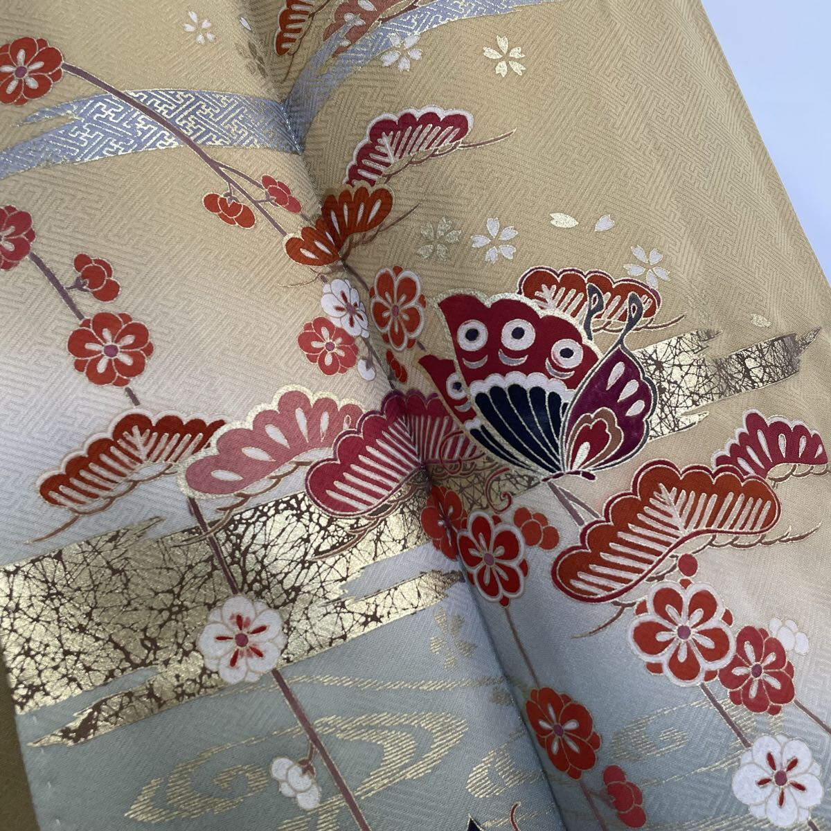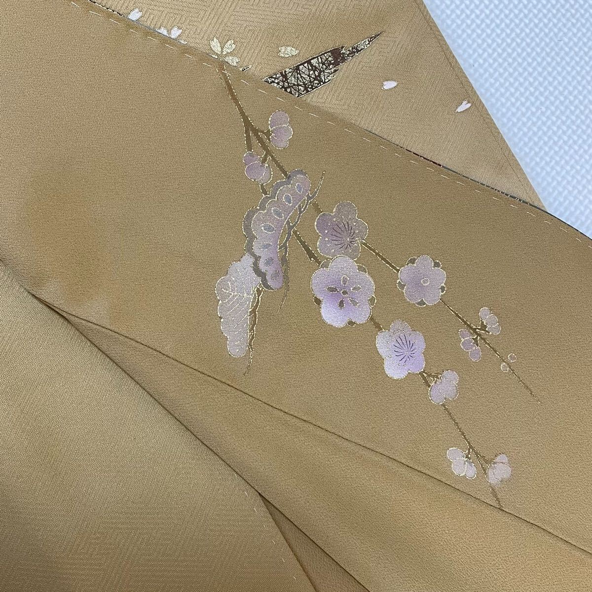 ・蝶々や梅の花が華やかで美しい訪問着です。 ・左衿、左前身頃、左袖にうっすらとシミがあります。(写真 9枚目) ※たたみジワあり ・まだまだ着用していただけますので、おすすめのお着物です。 ・お安く出品致しますので、是非この機会にいかがでしょうか。 |