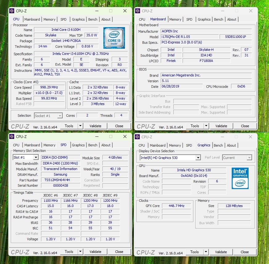 CPU:Intel Core i3-6100H