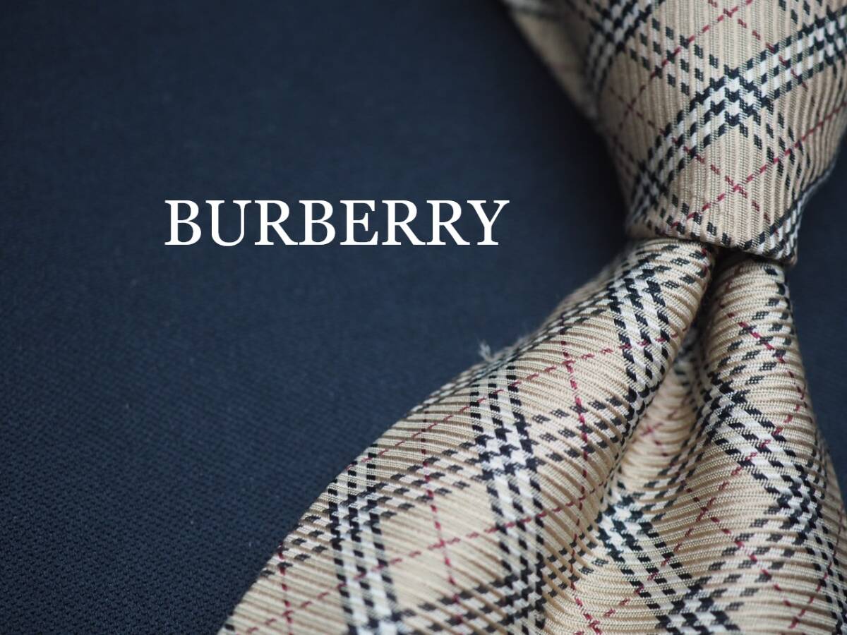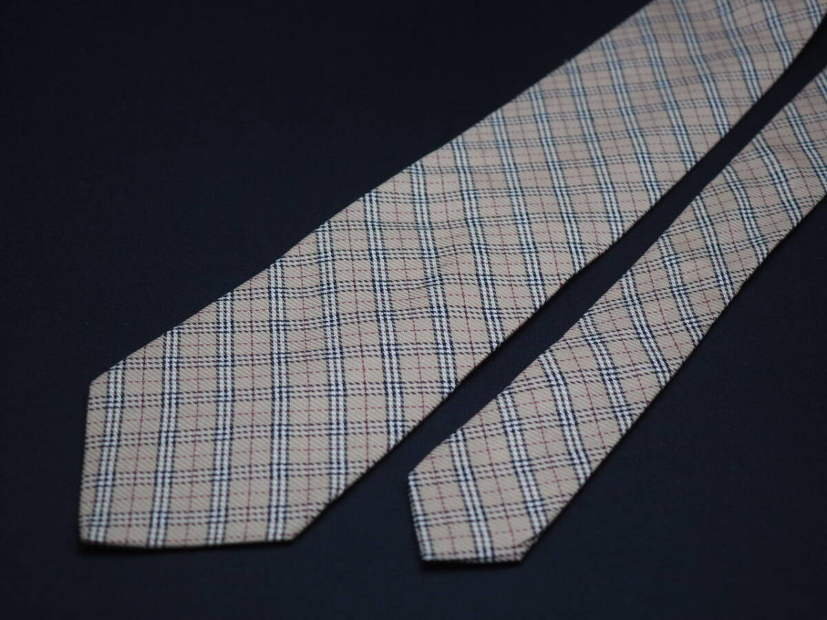 美品【BURBERRY バーバリー】 F2310 チェック ベージュ系 SILK ブランド ネクタイ 古着 良品 転売 仕入