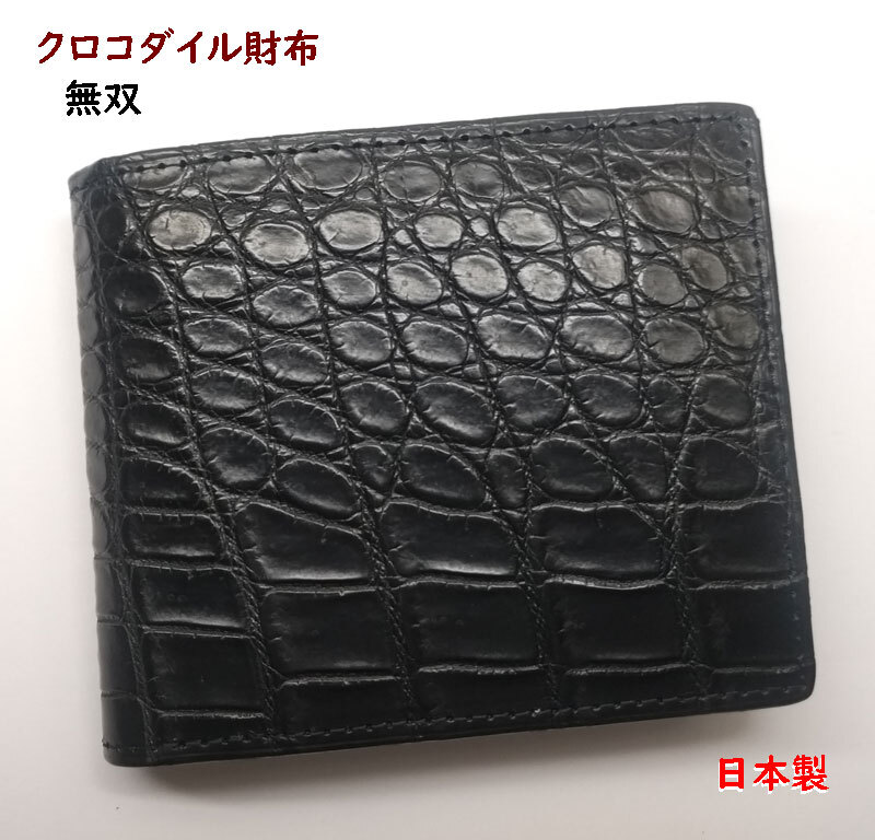 【送料無料】クロコダイル 2つ折り 財布 無双 ワニ皮 日本製
