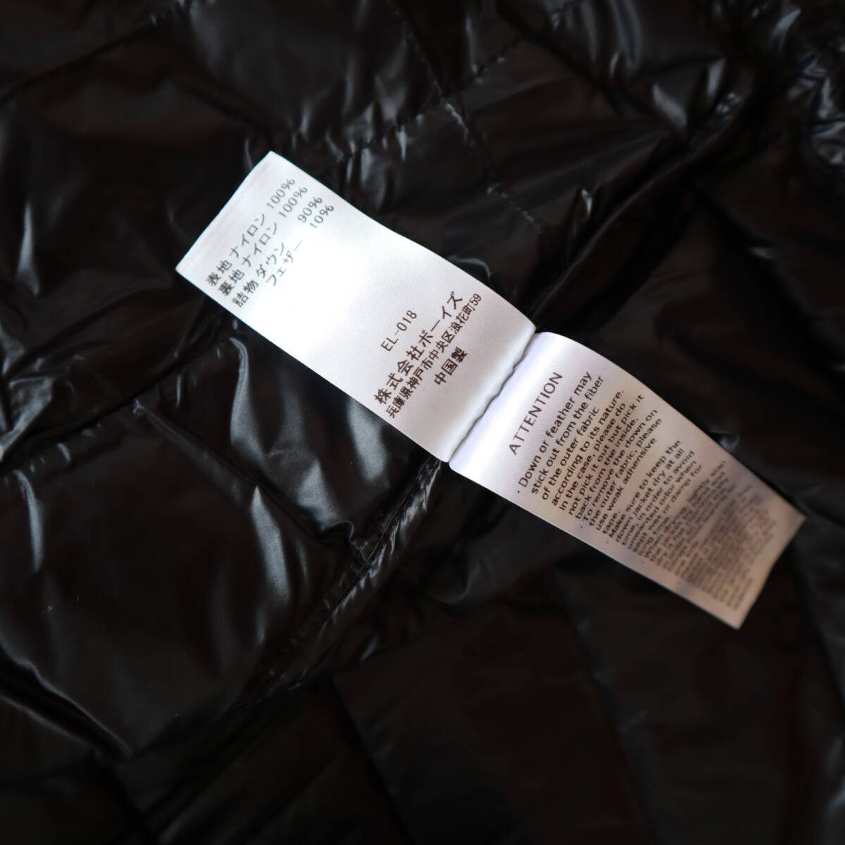 素材【表地:ナイロン100% 裏地:ナイロン100% 詰物:ダウン90% フェザー:10%】