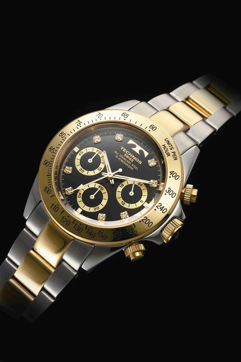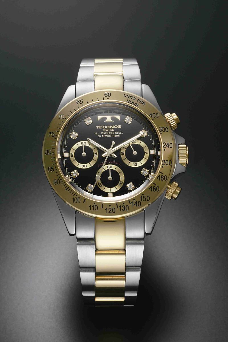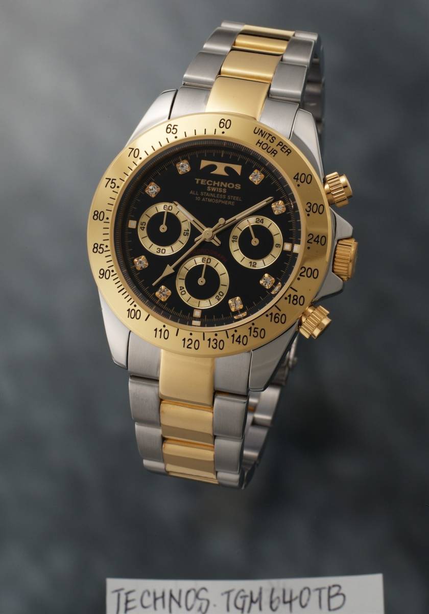 【セーム革無料進呈】【憧れの人気デザイン】【アウトレット品】TECHNOS テクノス 男性腕時計 メンズクロノグラフ腕時計 コンビベルト/ブラック アナログ3針クォーツ 24時間計 クロノグラフウオッチ 10気圧防水 メンズウォッチ TGM640TB |