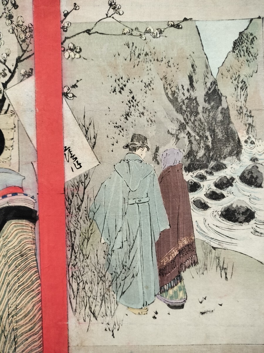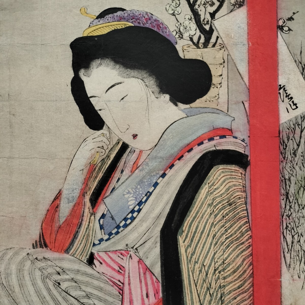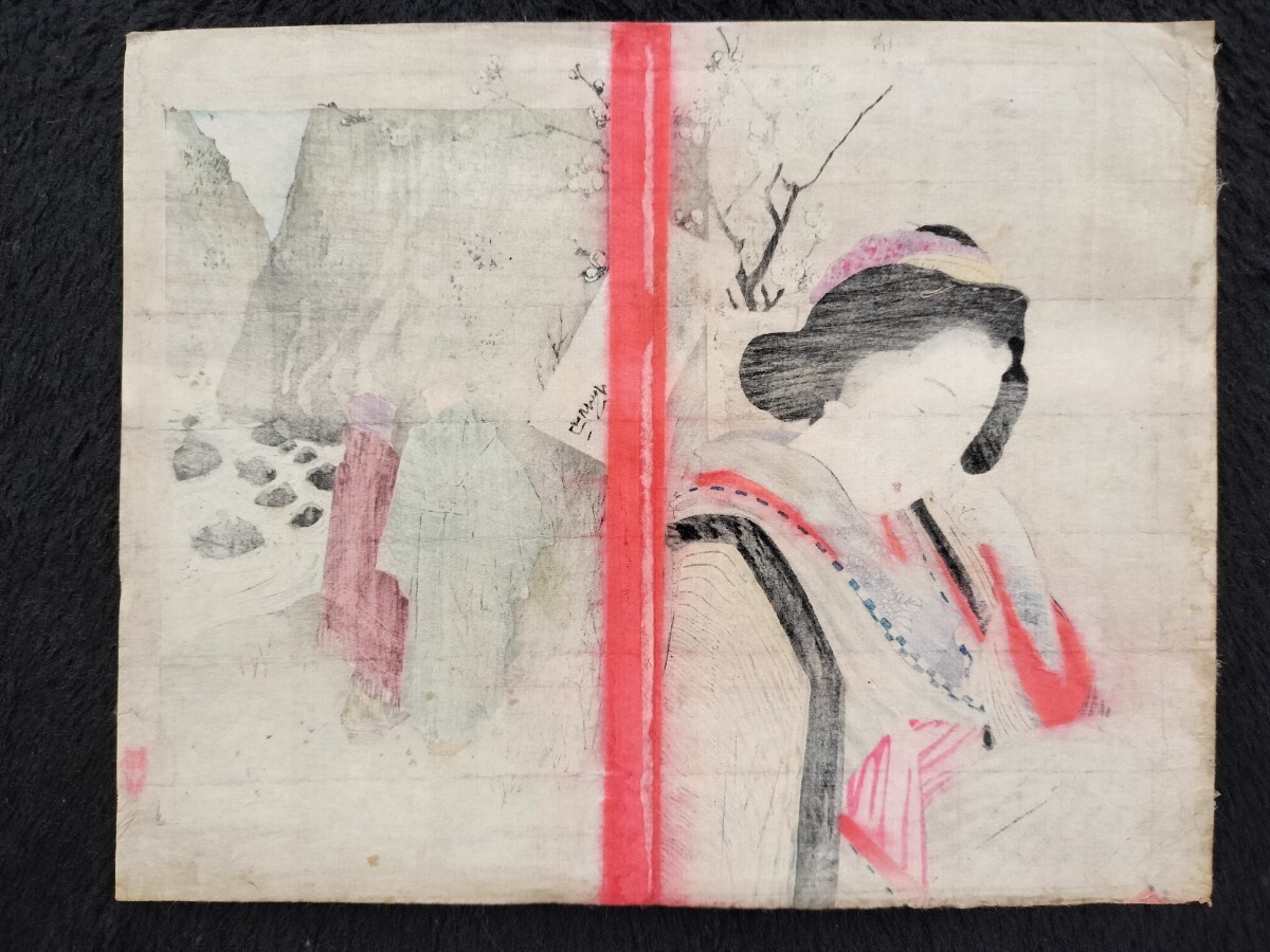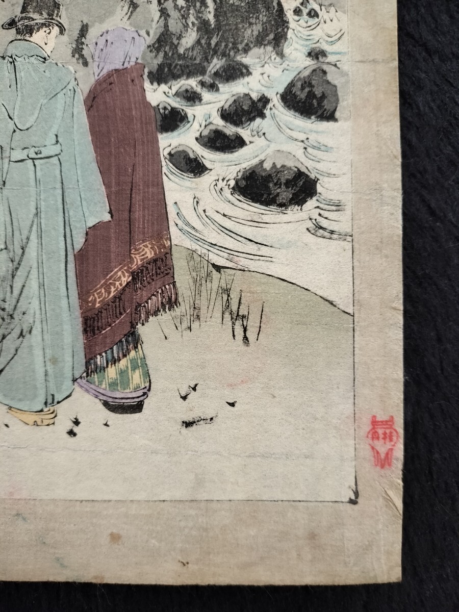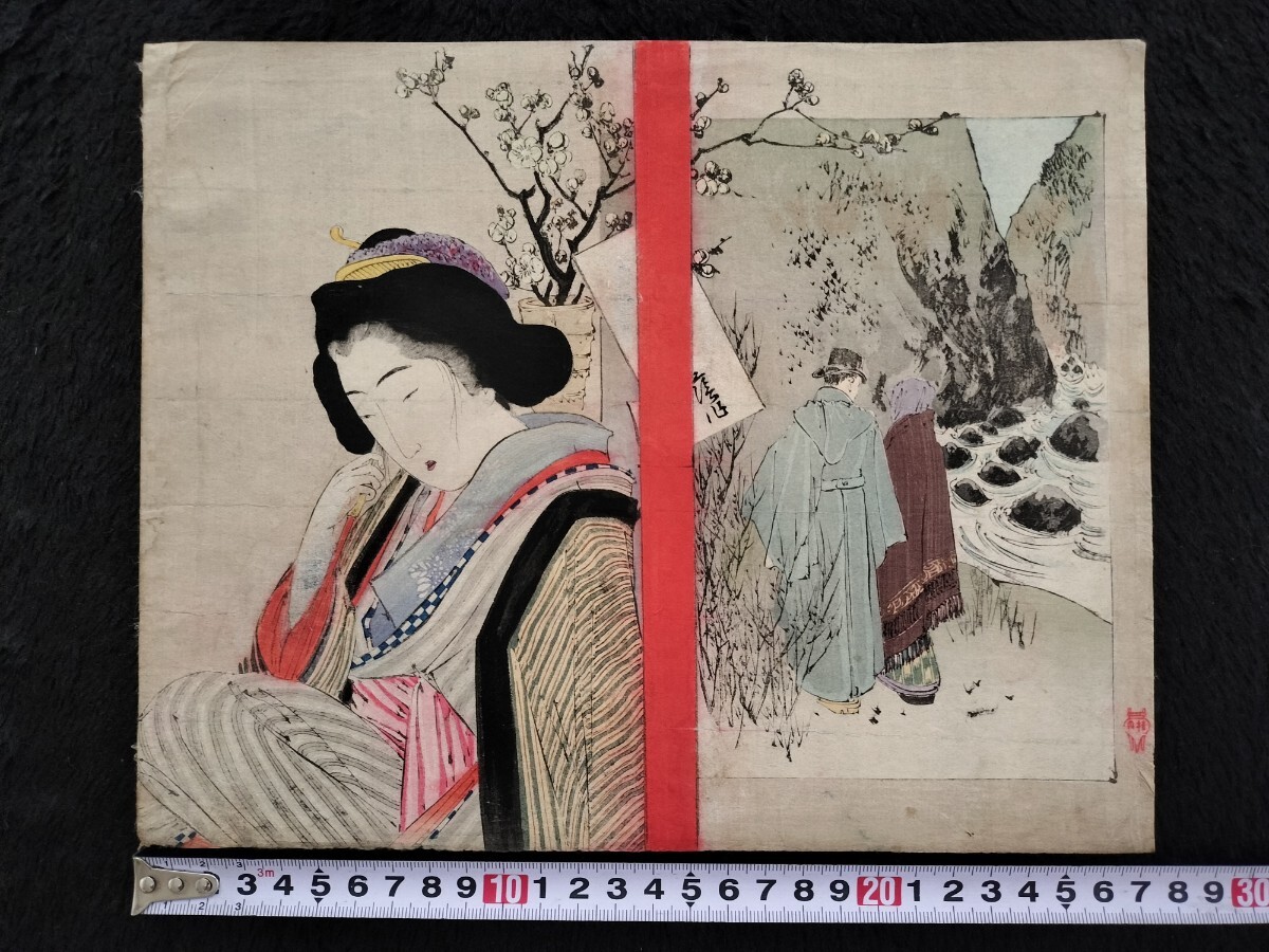 口絵!明治期/真作 武内桂舟「泥水清水」本物浮世絵木版画 美人画 錦絵 中判 裏打ち