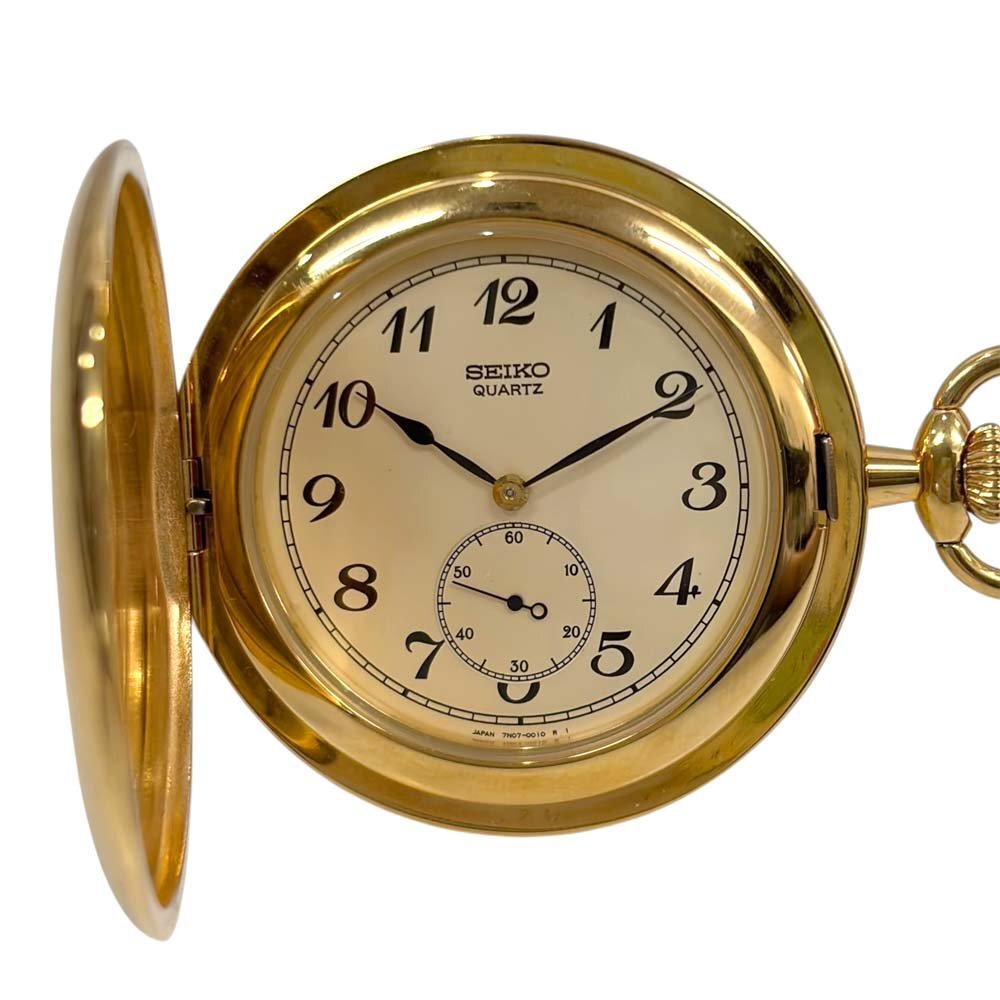 25-3458 【良品/電池交換済み】 セイコー 7N07-001A 贈 内閣総理大臣 懐中時計 クォーツ 電池式 ゴールド 金色 記念品 ユニセックス | |