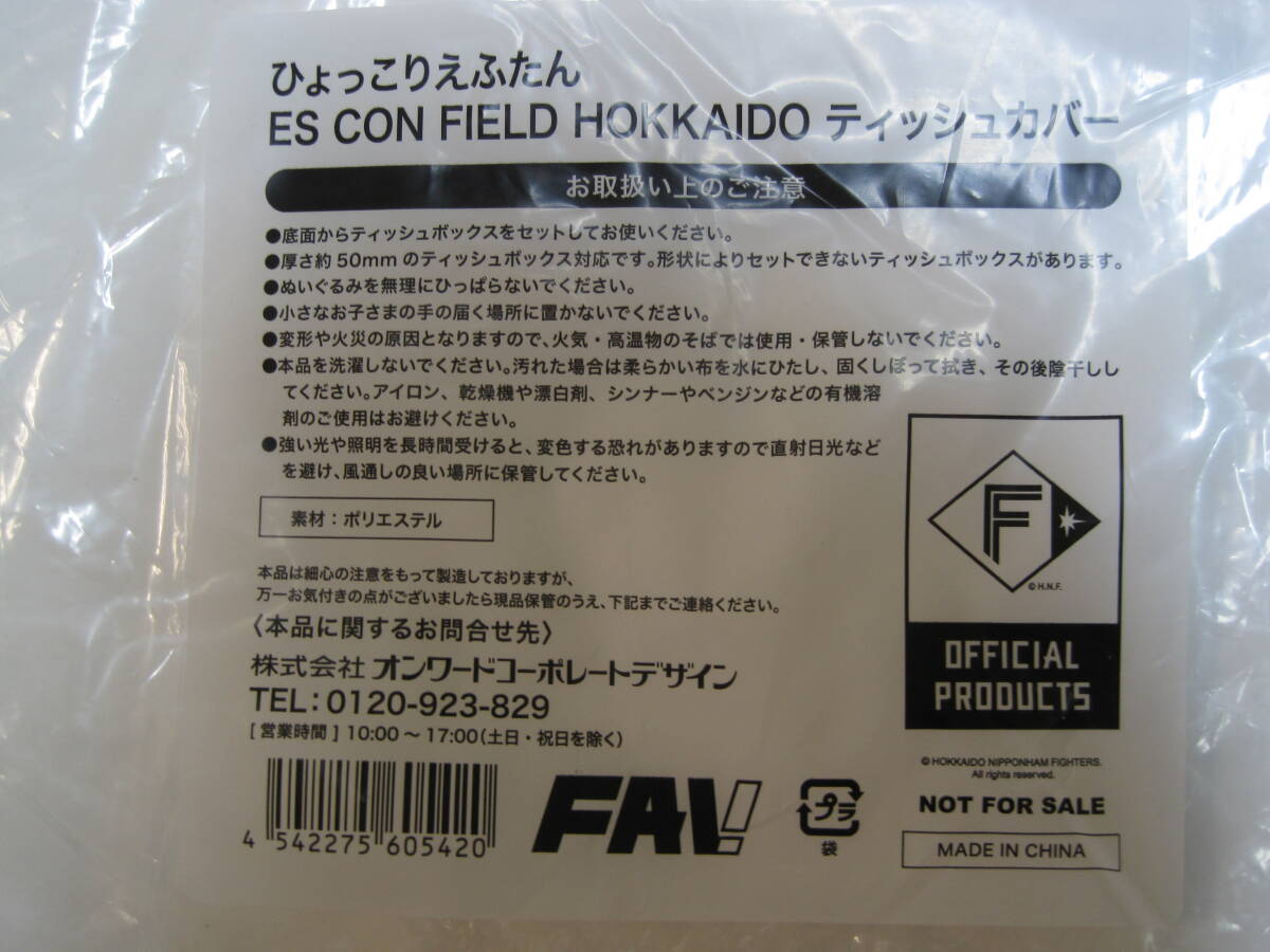 ●知人の代理出品で北海道日本ハムファイターズのFAVティッシュカバー、新品未使用品です。