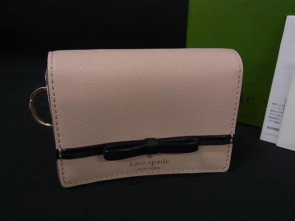 ■新品同様■ kate spade ケイトスペード PVC リボン フラグメントケース カードケース カード入れ 小銭入れ ベージュ系 DI6480