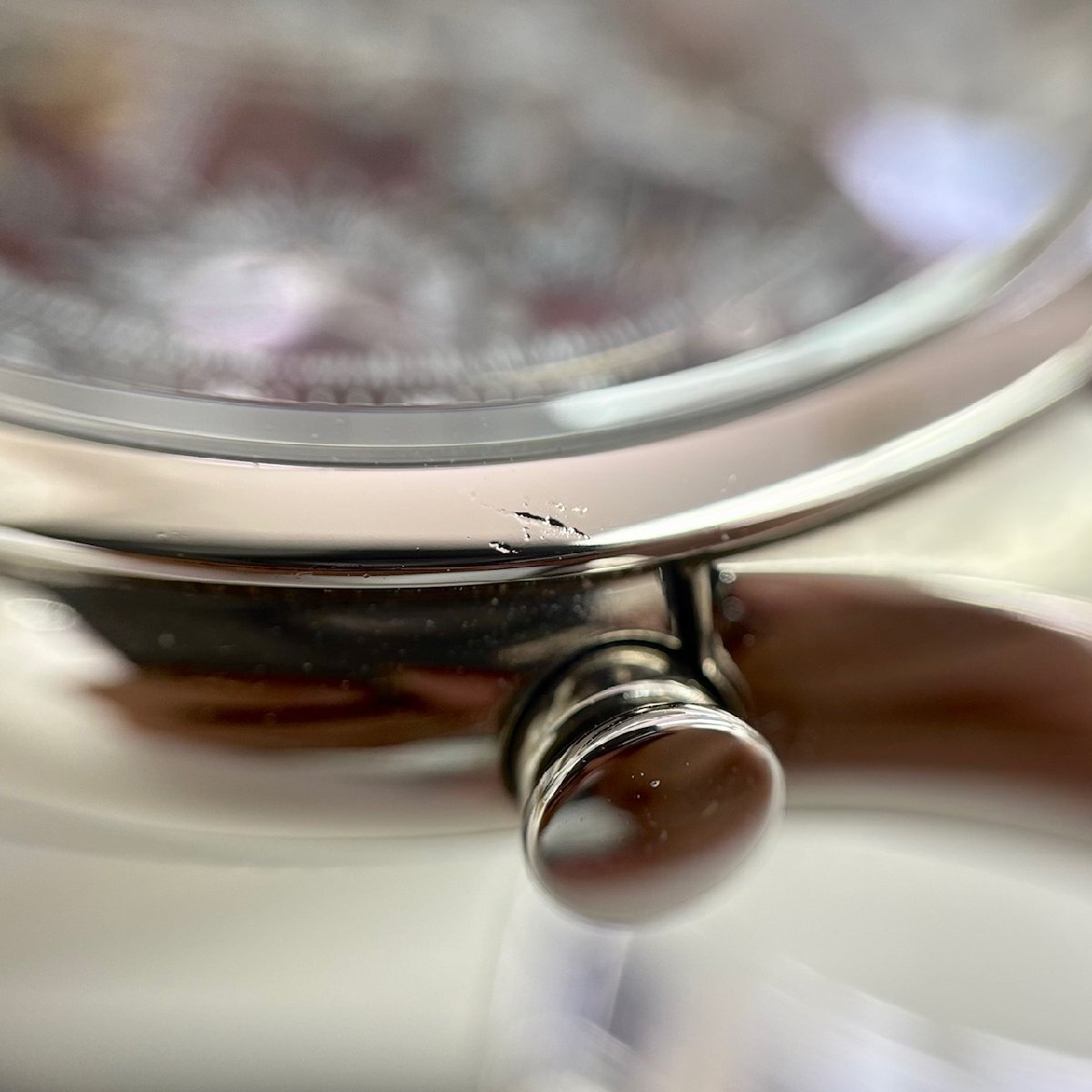 ・わずかにケースサイドやベゼルの小傷/打痕、ストラップのシワ/スレ等ございますが、大きなダメージ/使用感のない綺麗な状態です。