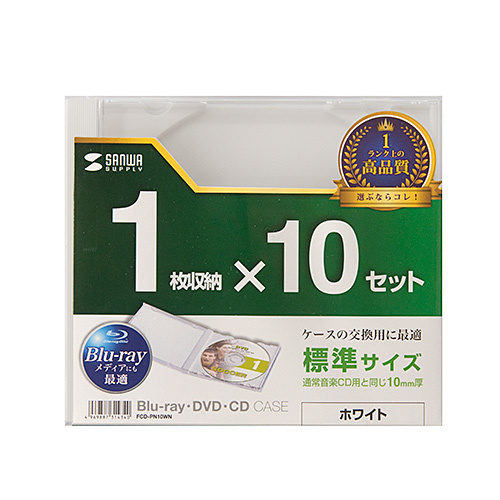 ※配送の送り主はサンワサプライ(株)と記載されています。沖縄・離島配送不可となります。 当店は正規販売代理店です。 特長 一般的な音楽CDのケースと同じ厚さ10mmのプラケースです。 100%バージンPS樹脂材を使用しており臭いが少なく耐久性も高い高品質なプラケースです。 DVD、CDはもちろんブルーレイディスクの保管にも最適です。 ジャケットの収納もできます。 気をつけておりますが、タイミングによっては在庫切れの場合があります。 仕様