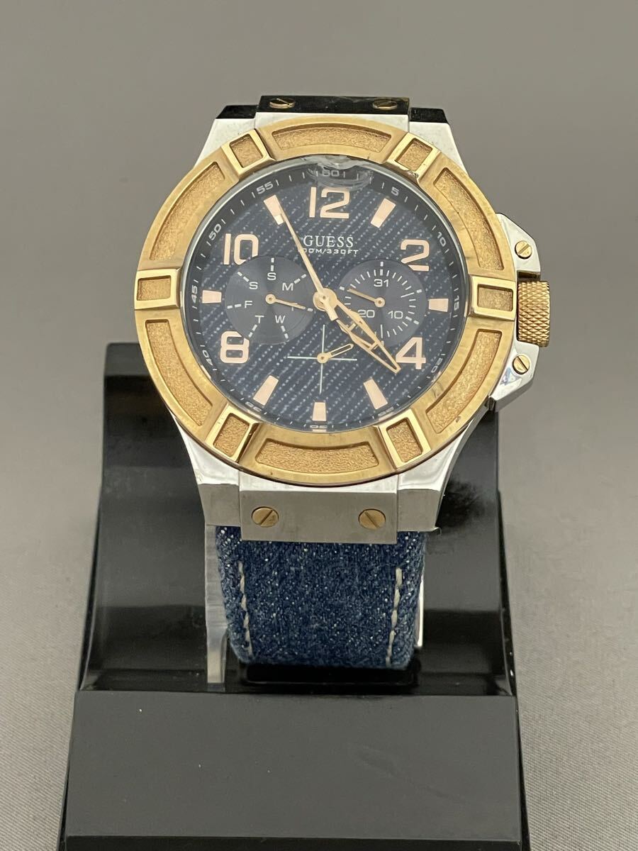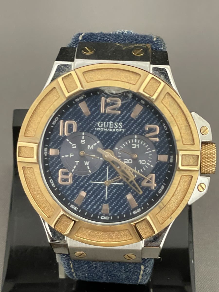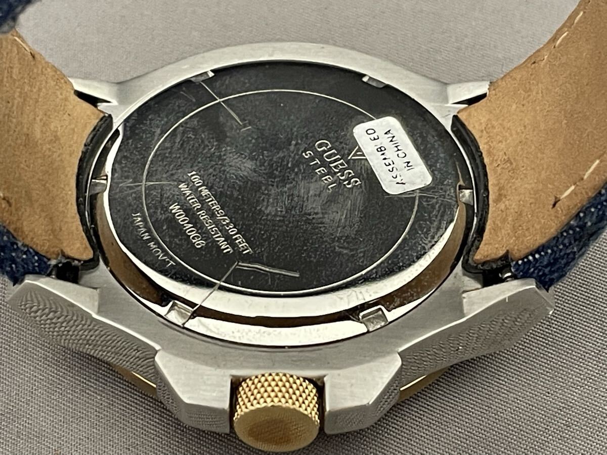 Guess クォーツ クロノグラフメンズ腕時計です。時計動いていますが詳しく動作確認してないためジャンク品扱いでお願いします。ノウクレームノウリターンでお願いします。