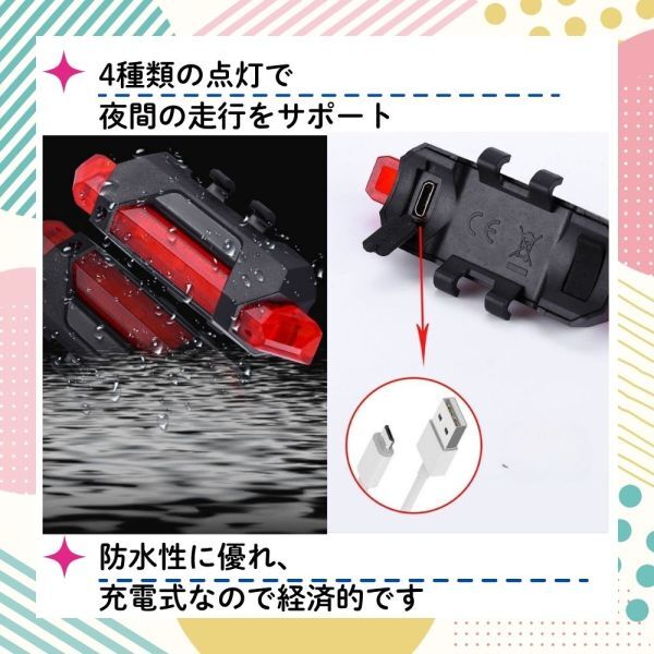 LEDテールライト USB 自転車 テールランプ リアライト 防水 赤 充電式