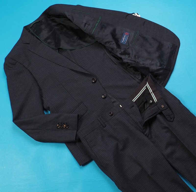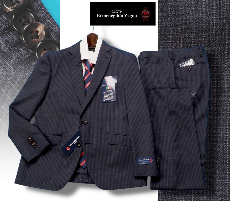 新品17.3万円 大手百貨店扱い 春夏『Ermenegildo Zegna ゼニア COOL EFFECT 伊製生地』ウール100% ストライプ スーツAB4紺(B) 1507071