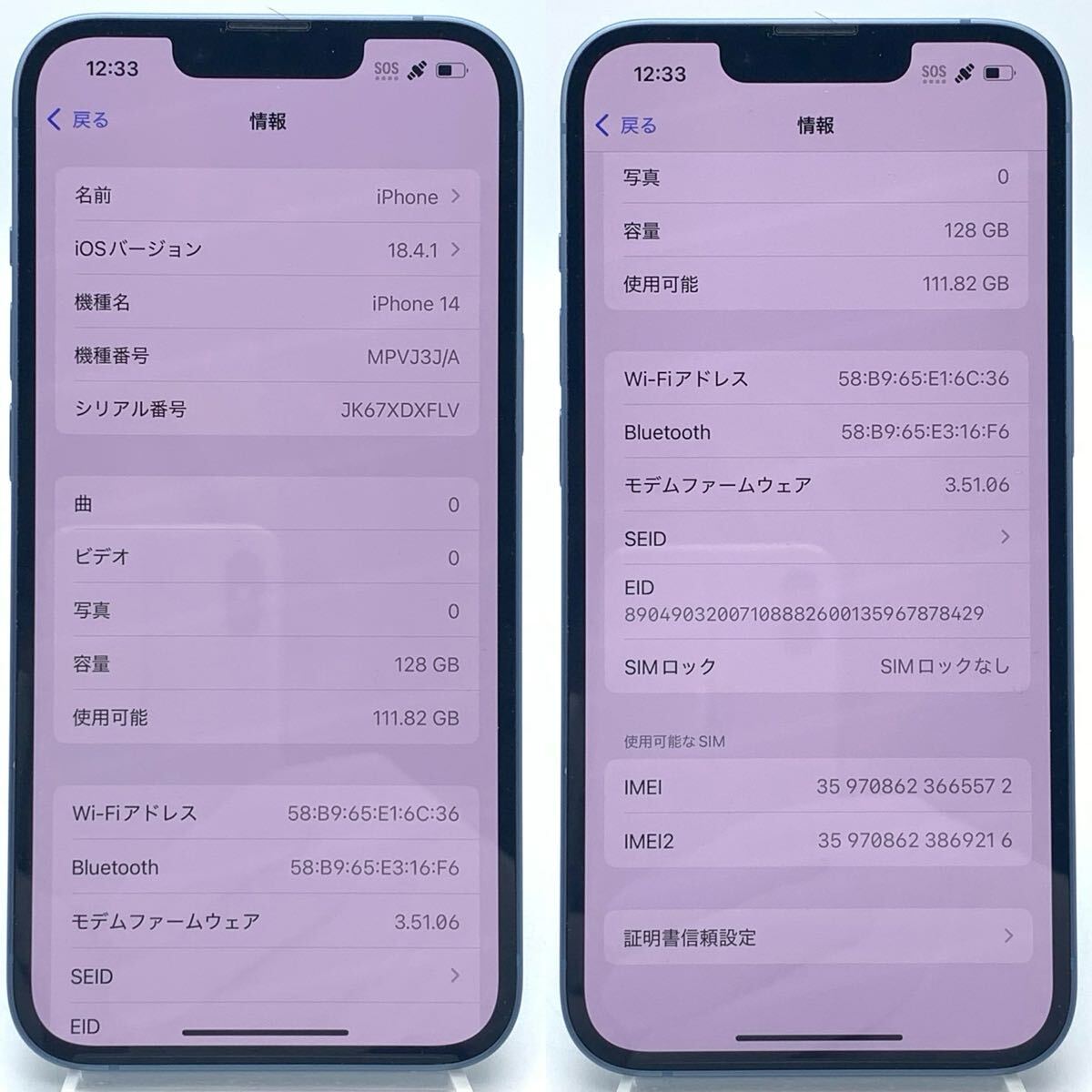 【SIMロック解除済】 iPhone14 ブルー 128GB au◯ Apple 本体 スマートフォン 箱