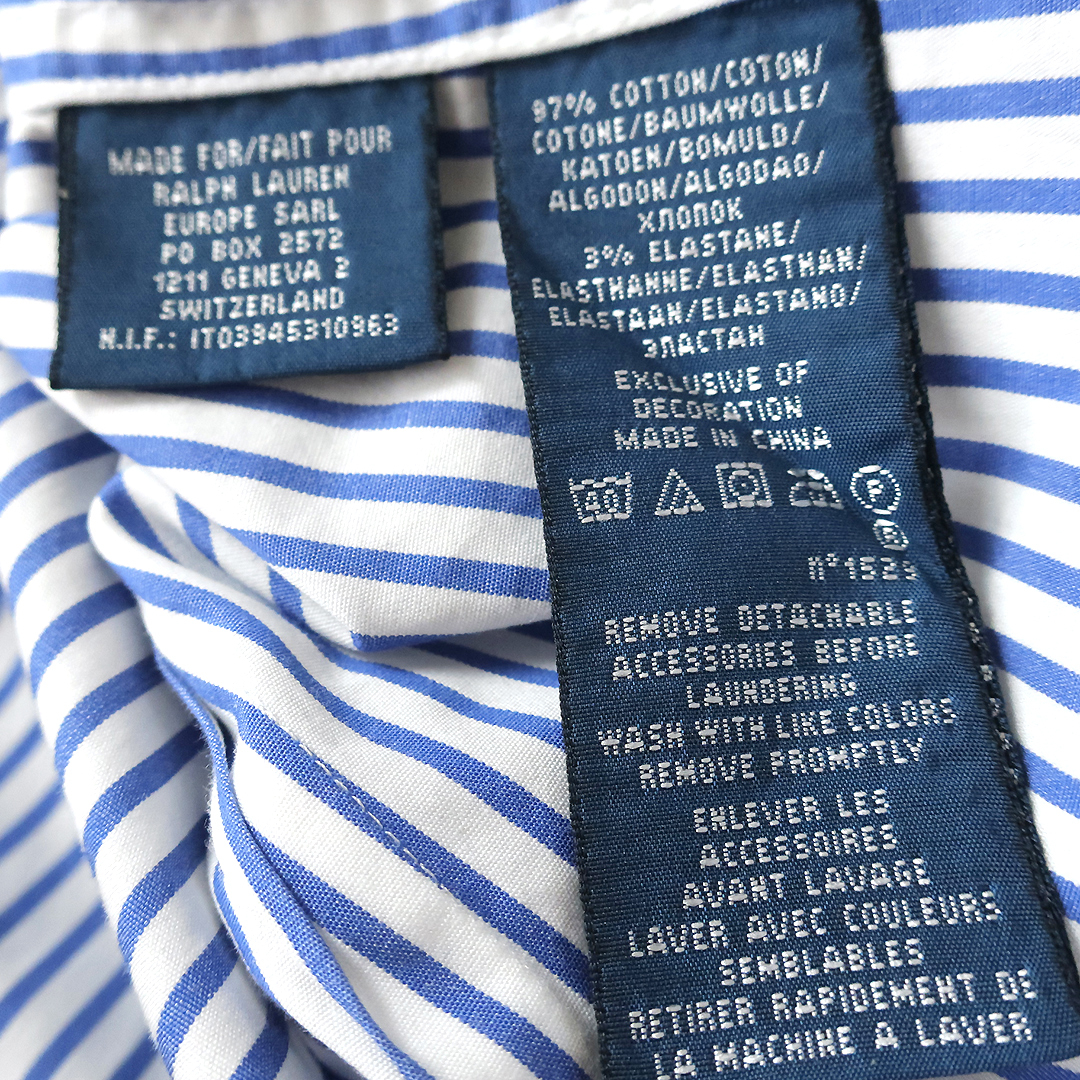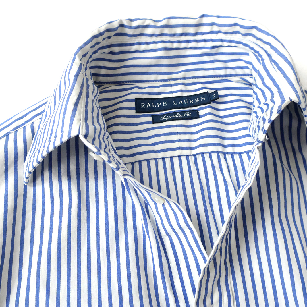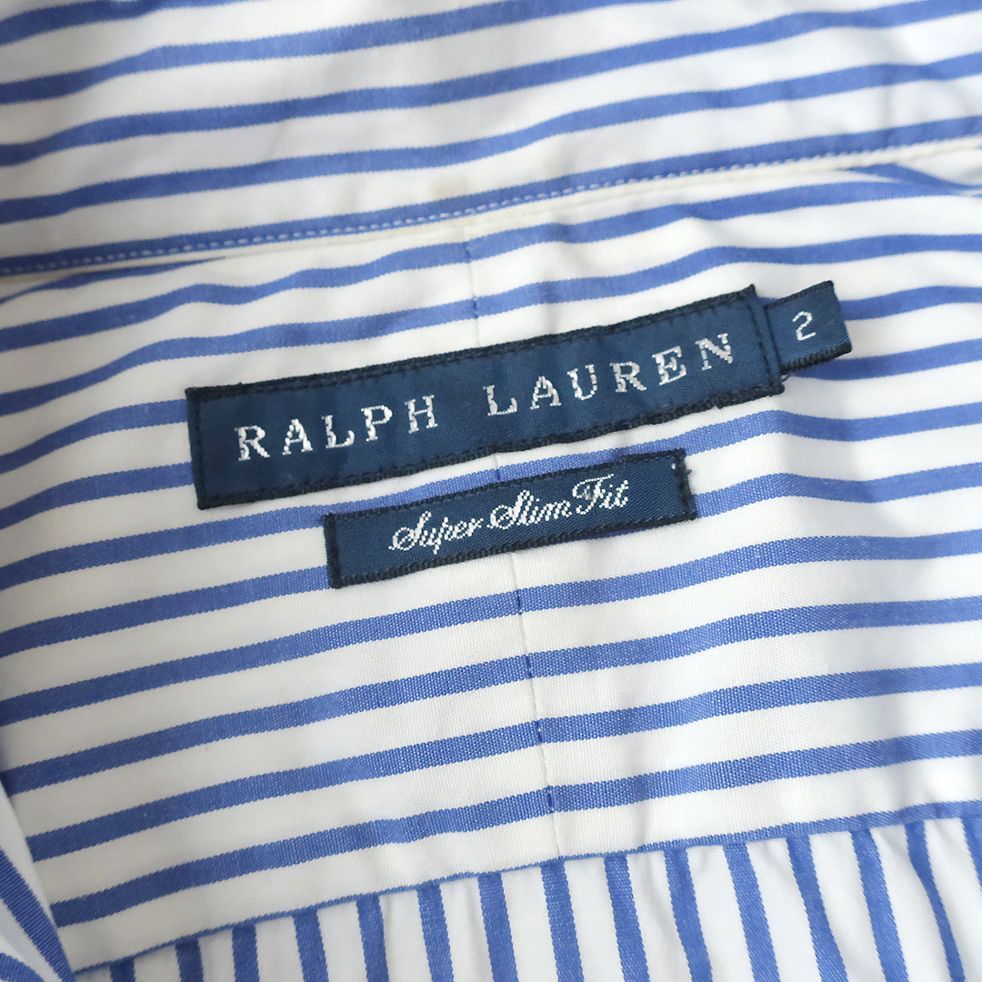 ラルフローレン ストレッチコットン ロンドンストライプシャツ ブルー 2(M) Slim Fit