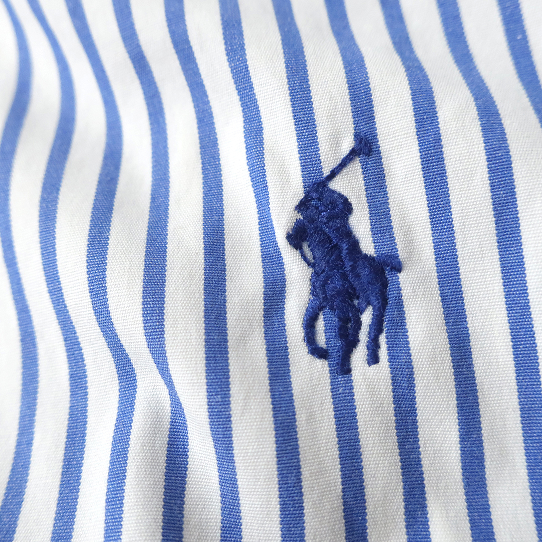 合わせやすい爽やかなブルーカラー ロンドンストライプに胸ポニー刺繍入り◎