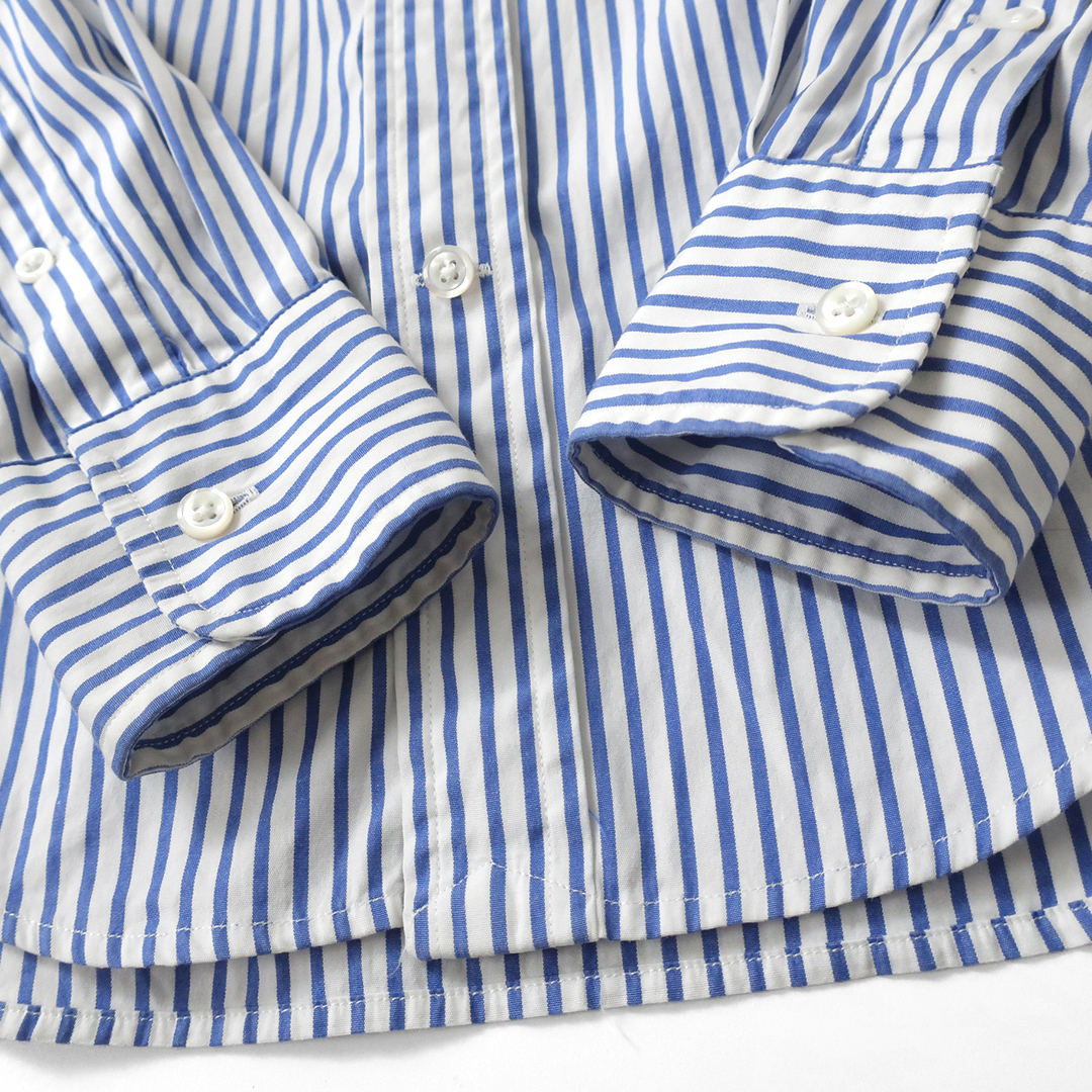 定番でお使いいただける爽やかなブルーストライプ 胸ポニーシャツ◎