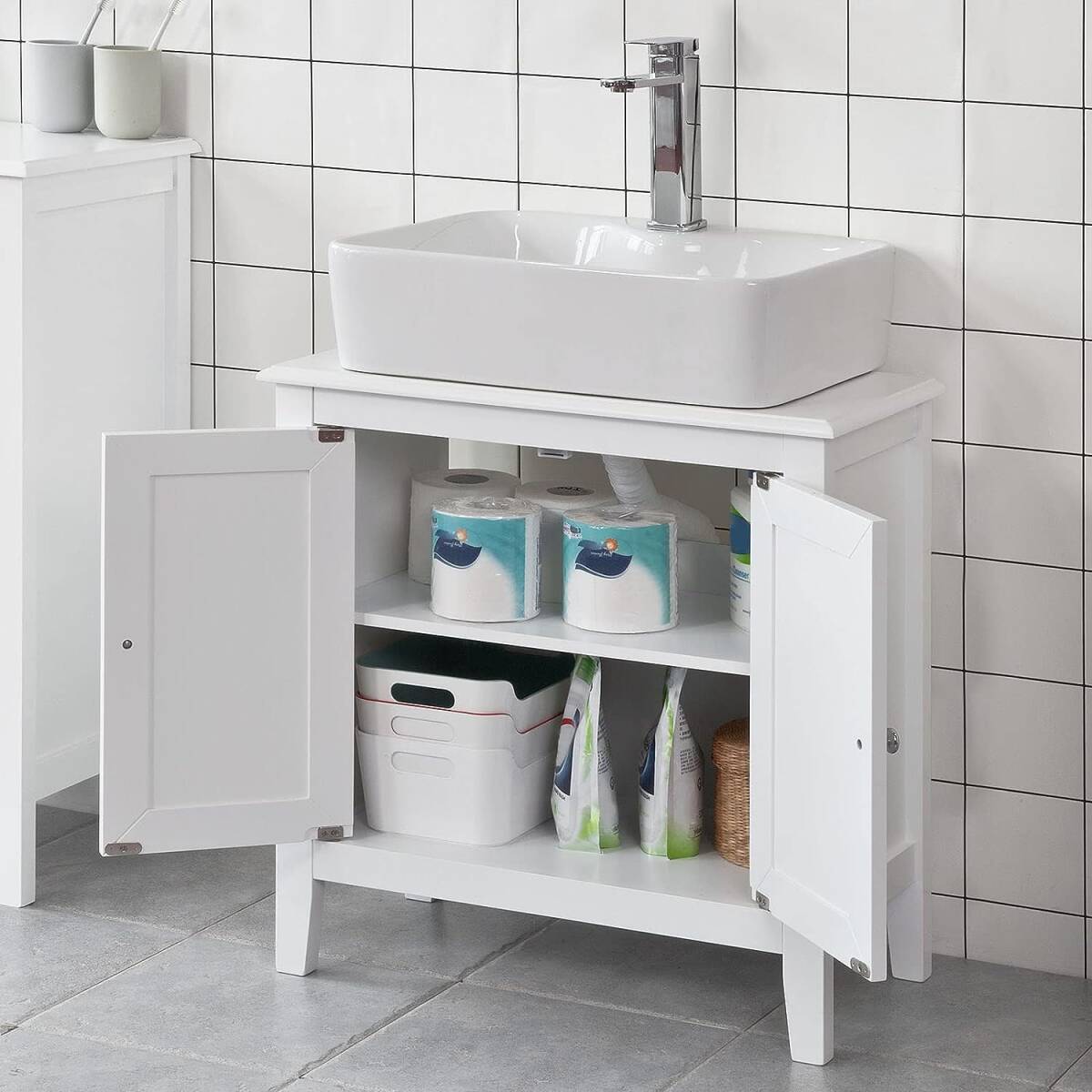 シンプルなホワイト色で、どんな洗面所にも馴染むデザインです。扉付きのキャビネットとして、ペーパー、タオル、洗剤など必要なアイテムをすっきりと収納することができます。