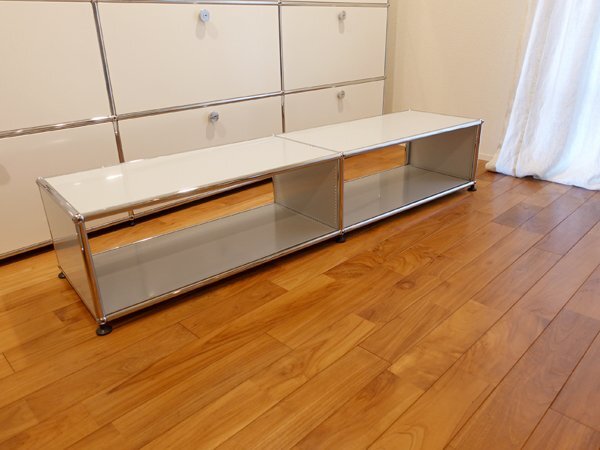 ご覧いただきましてありがとうございます。 建築家・フリッツハラーによるUSMシステム[中古品]です。 チューブとボールジョイントのきわめてシンプルな部材構成により、さまざまなユニットを形づくることができます。 こちらは2列1段タイプのテレビボードユニットです。 75cmモジュール×2列の組み合わせで、全幅は153cm程度です。 奥行は350mmモジュールです。 高さは、250mmモジュールで、USMの定番ラインナップのテレビボードより、10cmほど低くなっています。 テレビを設置した際の全高を低く抑えたい方、テレビボードの庫内を、隙間なくきれいに収めたい方などにおすすめの高さです。庫内有効高は、約23cmです。 パネルのカラーは、テレビやAV機器との相性のよい「ライトグレー」です。 背面は、パネルのないオープン仕様です。 遠目から商品全体を写すした画像は、過去に出品をしました同一商品の画像を転用しております。キズをペンで指し示した画像は現品を撮影したものです。 コンディションですが、中古の状態で入手したものですが、特に目立つ大きなキズや使用感もなく、全体的にきれいな印象です。 各パネルに、ごくわずかなスリキズなどはございますが、表面の光沢も十分に残っており、たいへんきれいな印象です。 下段のパネル全体に、浅いスリキズが散在しております。また、側面のパネルのうち1枚に1箇所、ごく小さな打痕がございます。指摘をされるとわかる程度で目立たず、ご使用時、設置時には気にならない程度かと思います。 大型ユニットを分解、再構築したものですので、一部ボールの各辺に、チューブとの接触でついたリング状のキズ(圧迫痕)がございます。メッキが剥がれるような大きなキズはなく、間近で見るとわかるようなレベルです。 その他、写真に写らない程度のごく浅いスレやキズが散在しておりますが、あまり目立たず、ご使用時には気にならない程度かと思います。 表面塗装の強いハラーですが、商品の性質上、細かなスリキズは避けられないものです。目についたスリキズなどはできる限り写真に掲載しましたが、その他気にならない程度の小キズはございますので、あらかじめご了承ください。 |