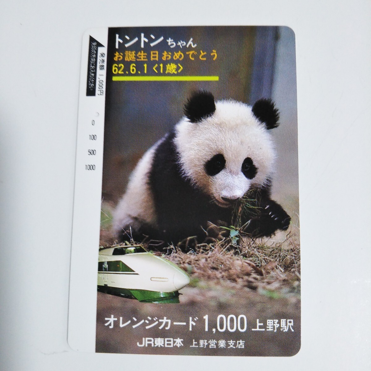 JR東日本・上野営業支店 トントンちゃん お誕生日おめでとう パンダ 上野駅 オレンジカード 使用済み 1穴