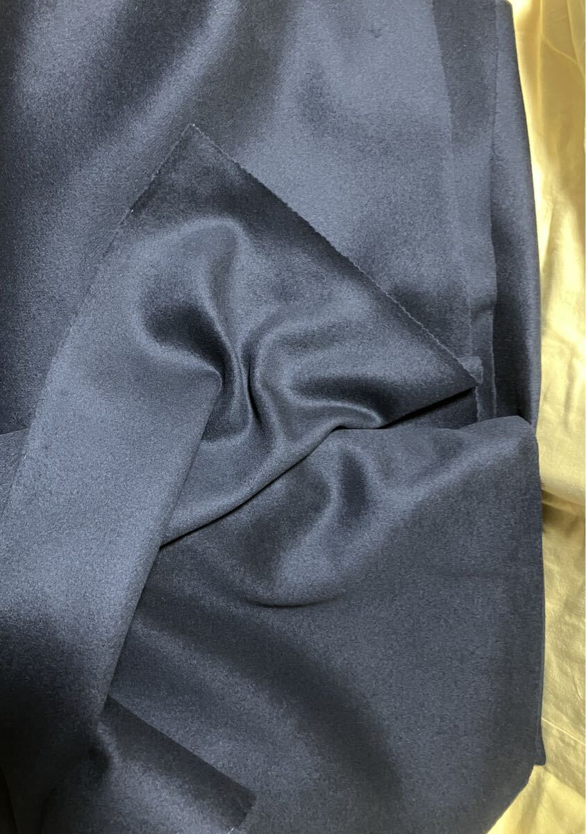 ダグデールの通常のウール100%のコート生地はかなり硬いものが多いですが、カシミヤが入る事で艶感と少し柔らかさ、そしてしなやかさが出ています。