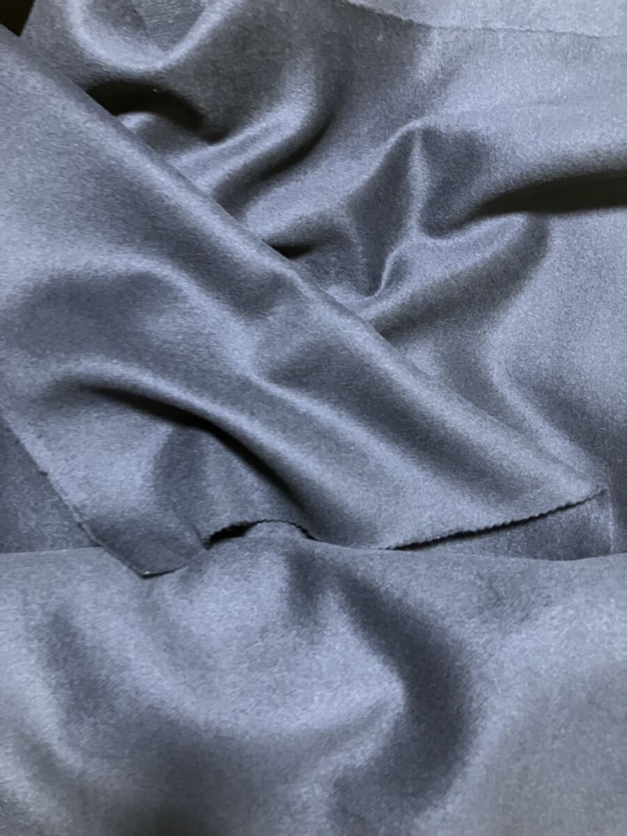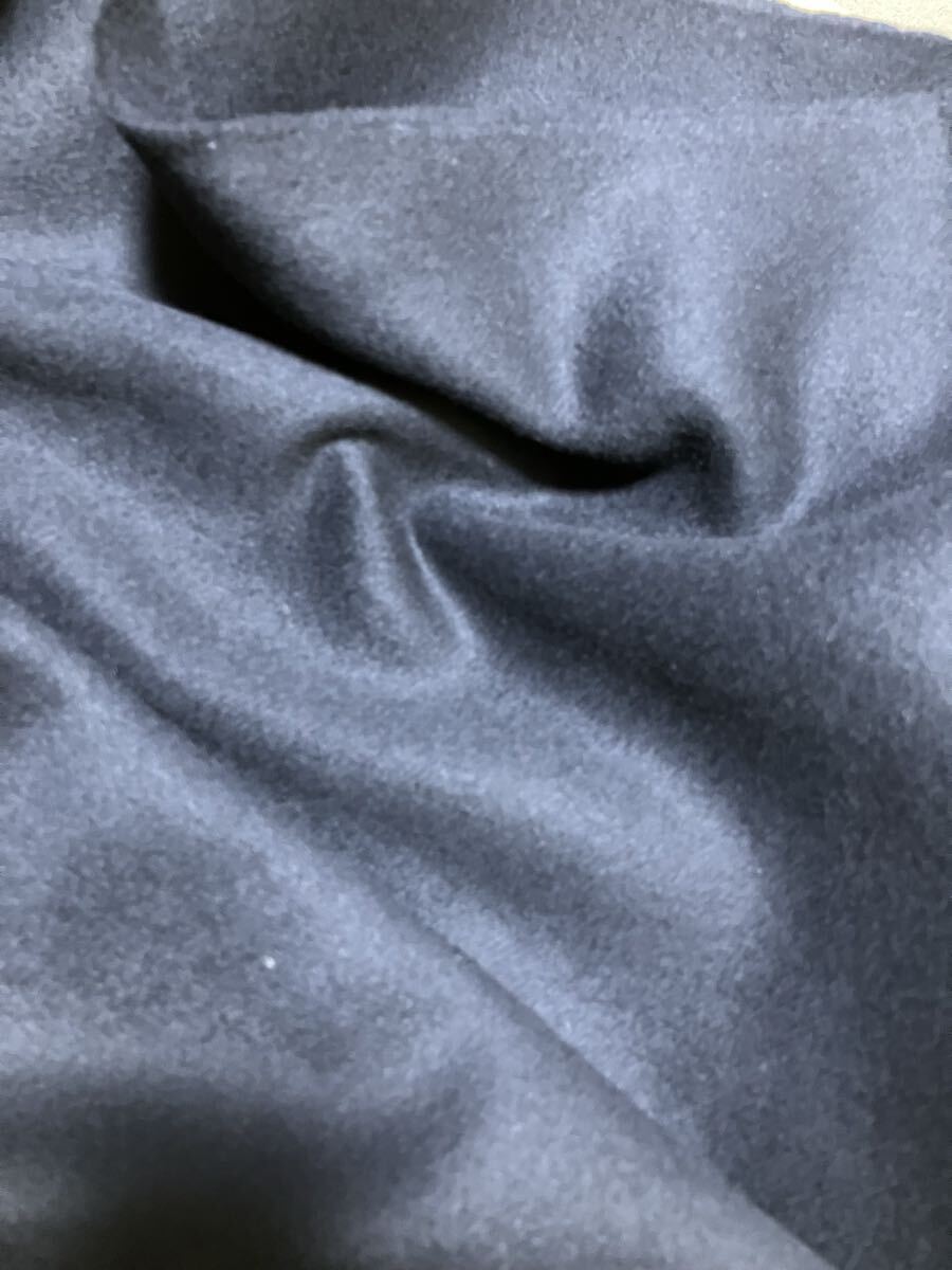 厚手でハリのある生地で特にビーバー仕上げにはなっておりませんが、しっかりと光沢感があります。