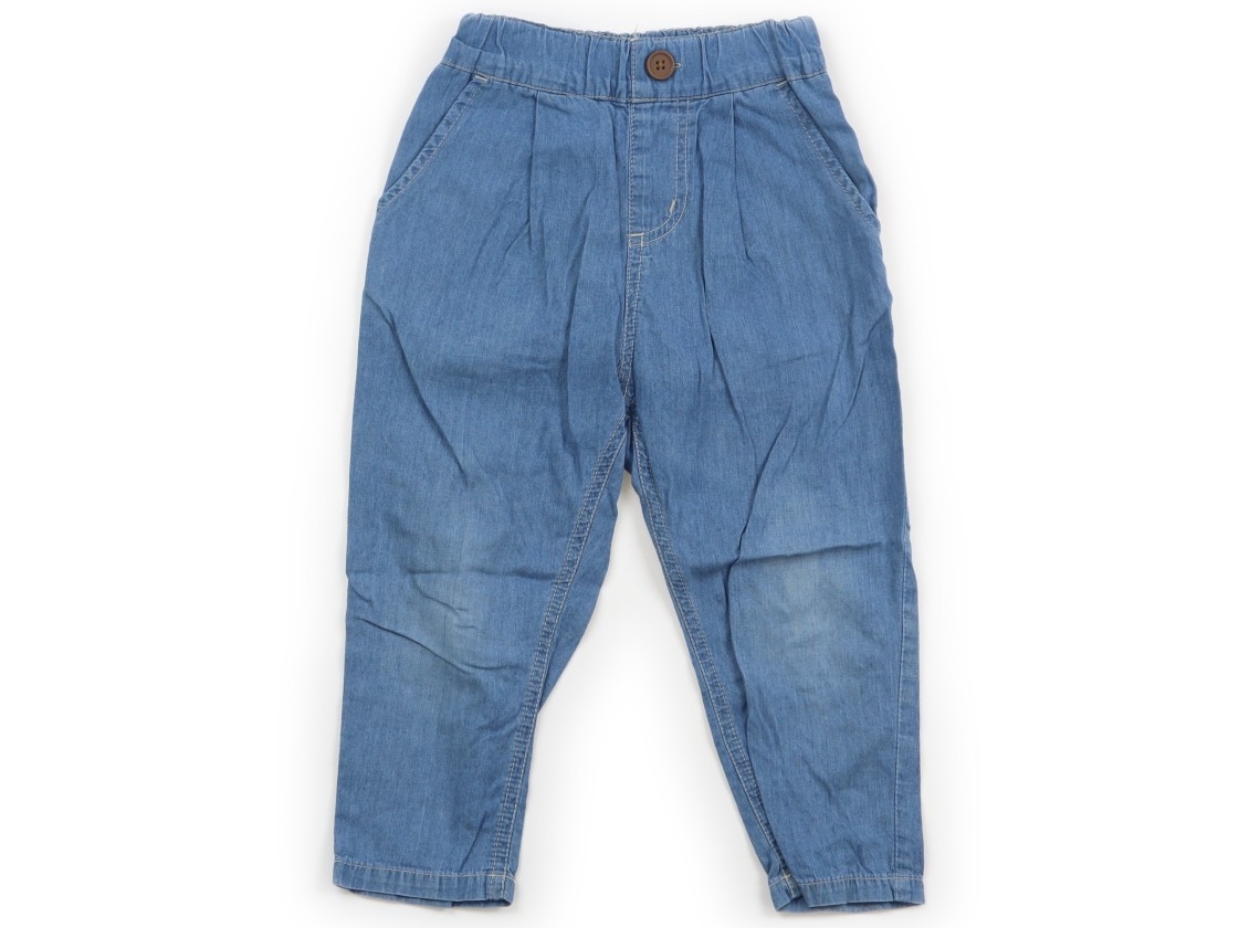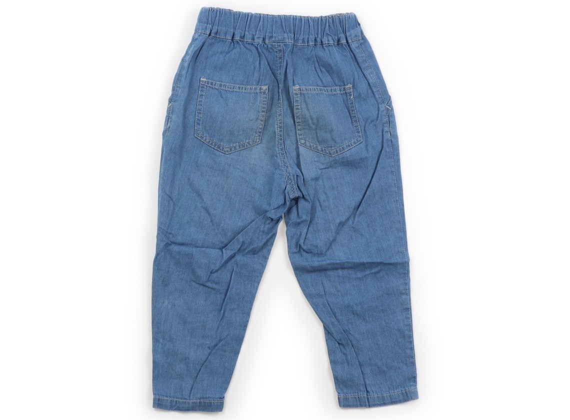 ウエストのゴムは交換穴があります。薄手のダンガリー素材。膝・ヒップに薄汚れがありますが、まだお使いいただけそうです。
