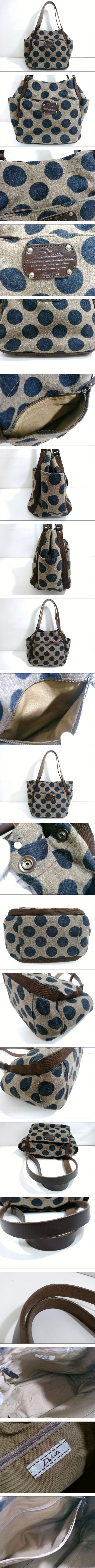 ※離島など別途中継手数料がかかる地域が御座います。 その場合はお振込みを追加でお願いする場合が御座います事、 事前にご了承の程、宜しくお願い致します。 ※送料には業者指定された運送用梱包資材代が含まれます。 専用BOX、段ボール梱包以外での補償は対象外となります。 [商品名] 1円スタート 【美品】Dakota ダコタ ピット トートバッグ [サイズ] 高さ約33cm, 横約40cm, マチ約16cm, 持ち手長さ約51cm [素材] ウール×本革レザー他 [カラー] ブラウン系×ブルー系 [仕様] マグネットボタン開閉仕様 ファスナーポケット×3 フリーポケット×2 [状態] 全体に毛羽立ち、薄い汚れが御座いますが、 その他は殆ど傷み無い美品です。