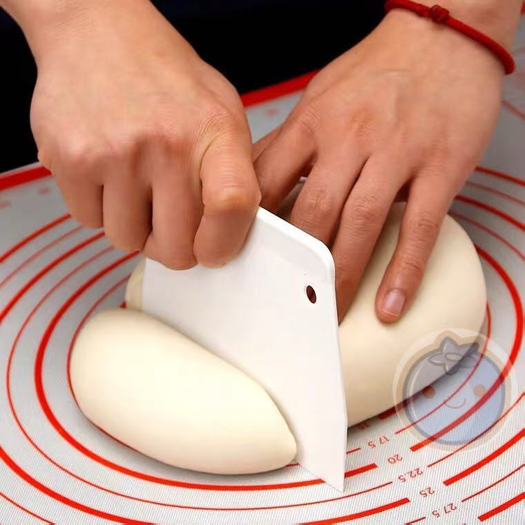 カーブを使って生地を混ぜたり、ボウルから生地を取りだしたり、柔らかいパン生地を簡単に切り分ける、