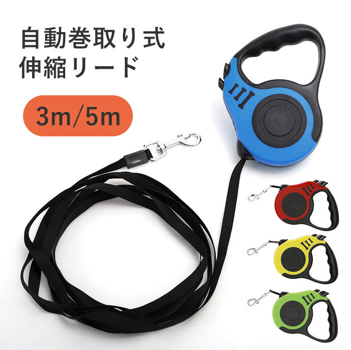 商品説明 | ・最大5mと最大3mまでリードが伸縮可能!ワンちゃんがのびのびお散歩できる「自動巻取り式の犬伸縮リード」。 ・大きいボタンをカチッと押すとリードの長さが固定でき、お好みの長さにできる。 ・小さいボタンをカチッと押すとリードのロック解除ができる。 ・ワンちゃんのご機嫌に合わせてロックと解除が自在におこなえるから、毎日のお散歩が楽しい♪ ・グリップは凹凸になっているので握りやすい。首輪とコーディネートできる、ポップなカラー展開。 |