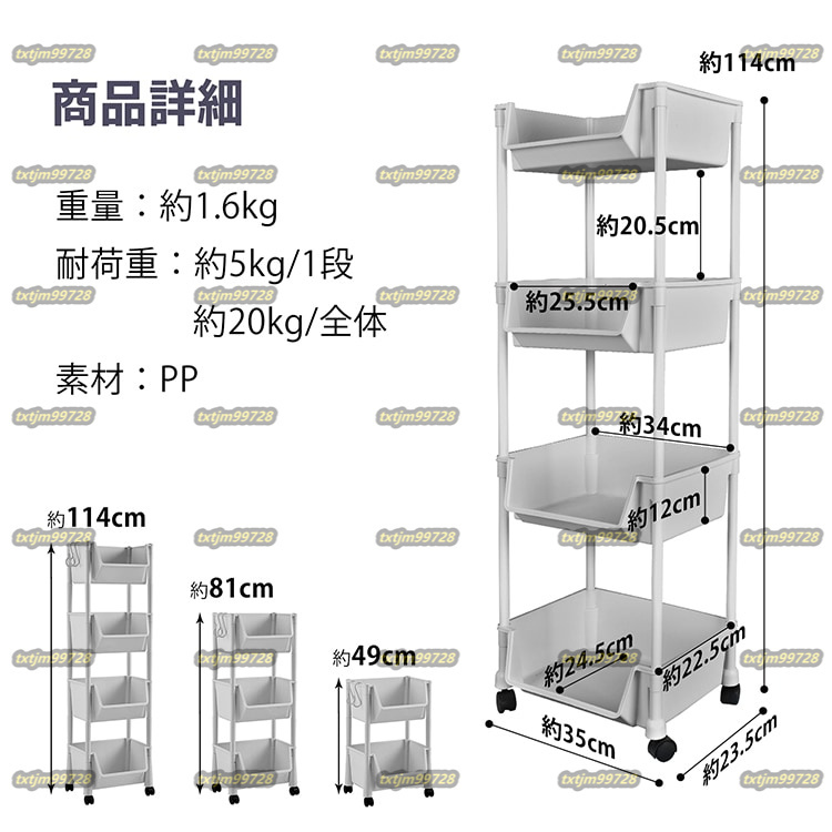 【耐荷重】:(約)5kg/1段・(約)20kg/全体