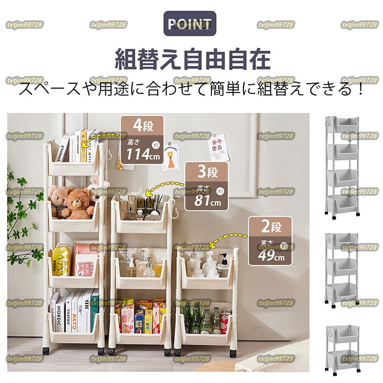 店主厳選★ワゴン キッチンワゴン 収納ラック キャスター付き 組替可能 広い取り出し口 軽量 全体耐荷重約20kg 小物収納 リビング 洗面所
