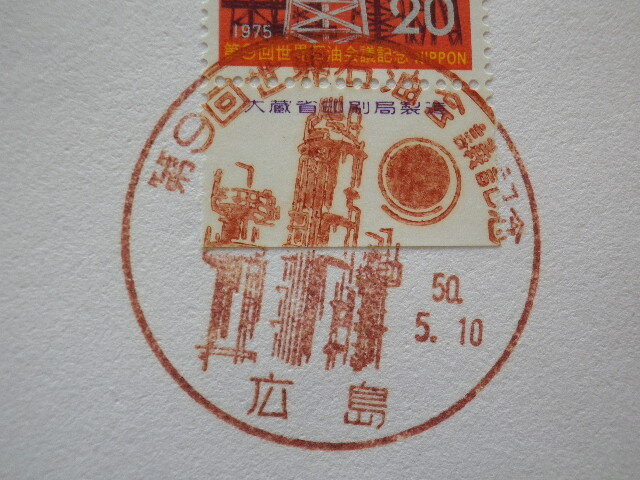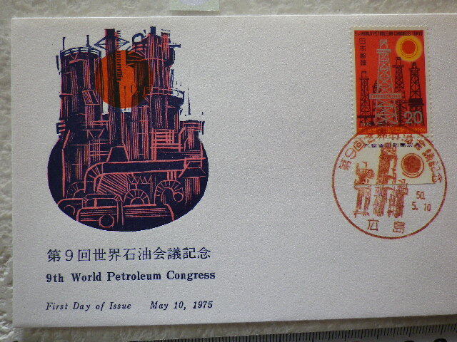 FDC 第9回世界石油 1975年 1貼1消 銘板付 解説書有 jps創作版画●44●同梱大歓迎