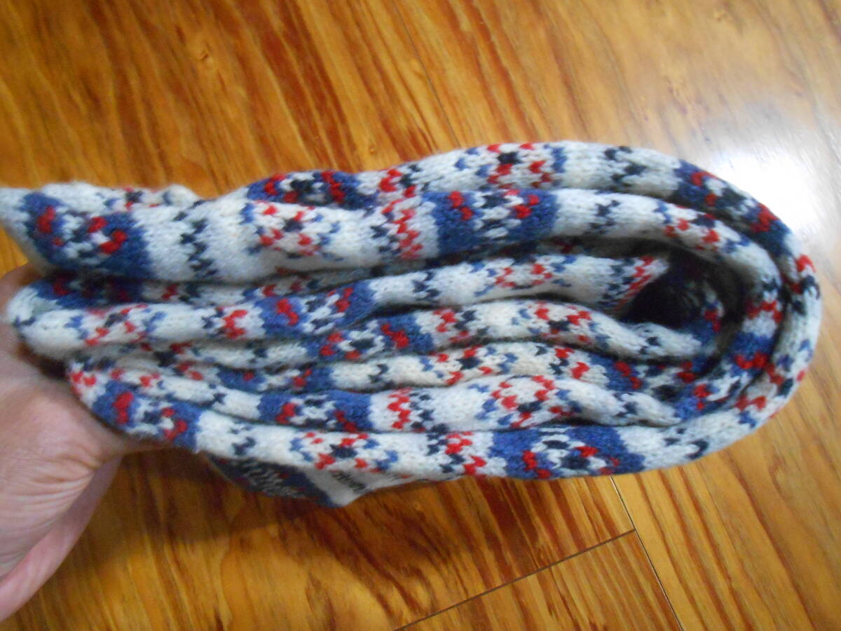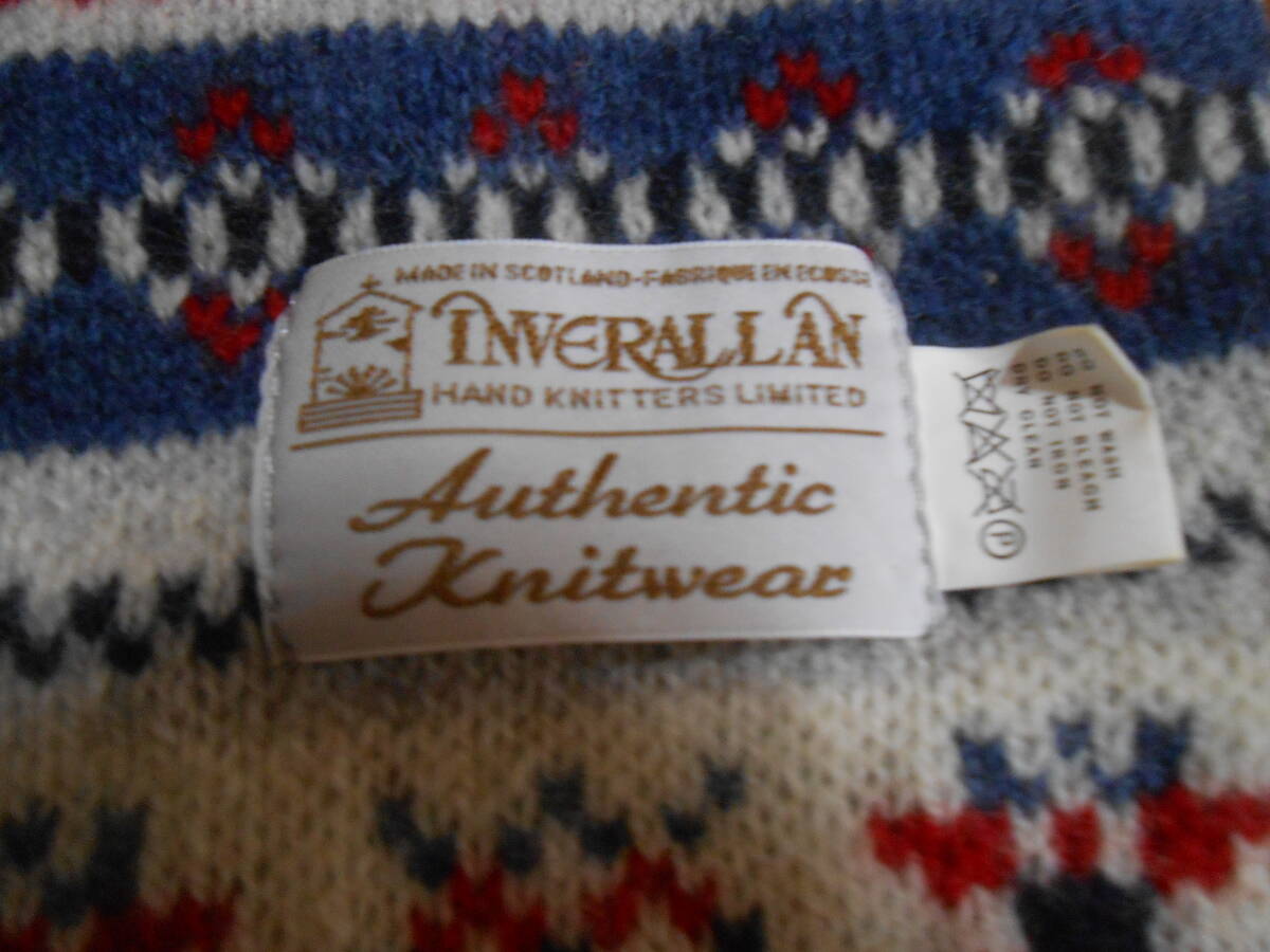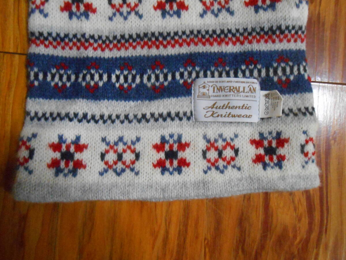 英国の老舗ニットウェアブランド INVERALLAN インバーアランのウール100%のダブルフェイスのニットのマフラー。ホワイトをベースにした綺麗な柄です。着用感の少ない美品です。広げた時に、約20cmX180cmの長尺です。合わせ易い美しい柄で、男女兼用で愛用出来ると思います。この機会に。このほかにも、ビンテージ服・靴や英国高級老舗店 Turnbull & Asserのシャツ等を出品していますので、よろしければご覧ください。