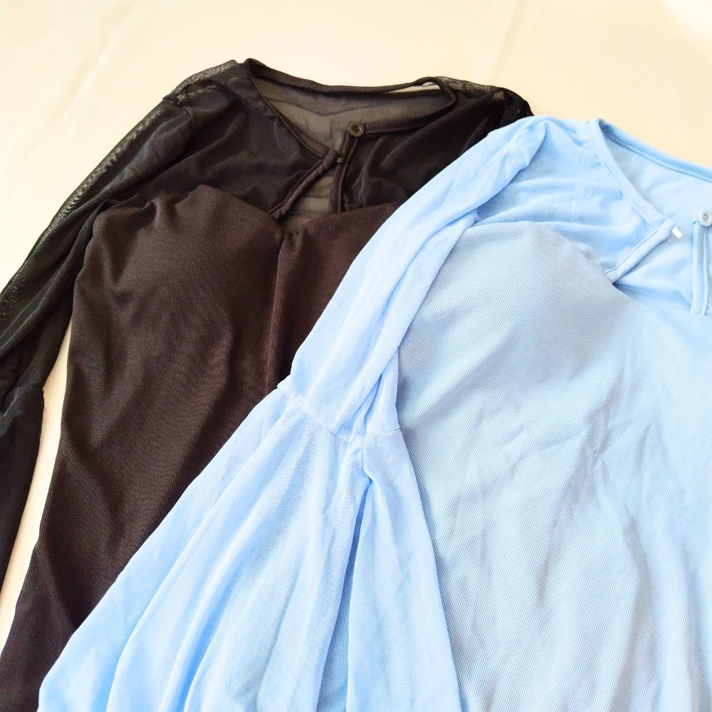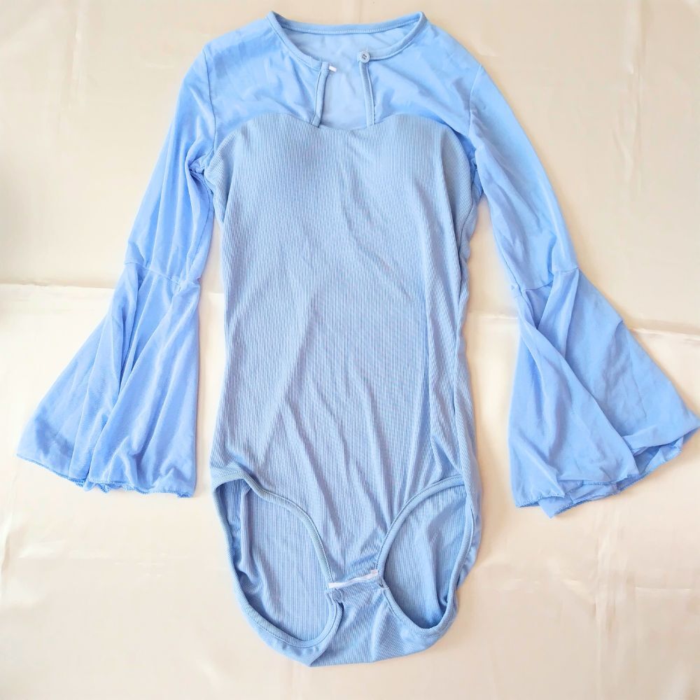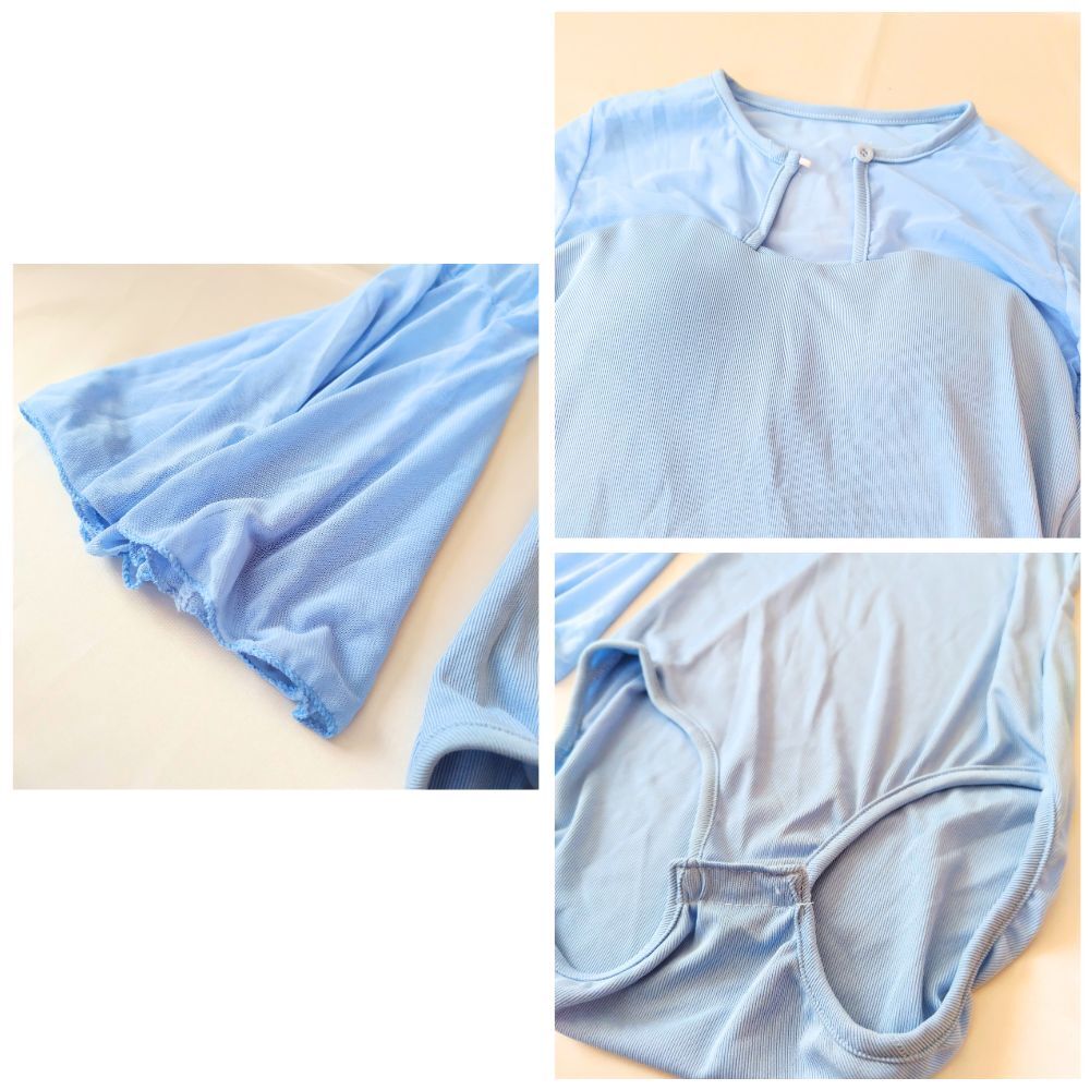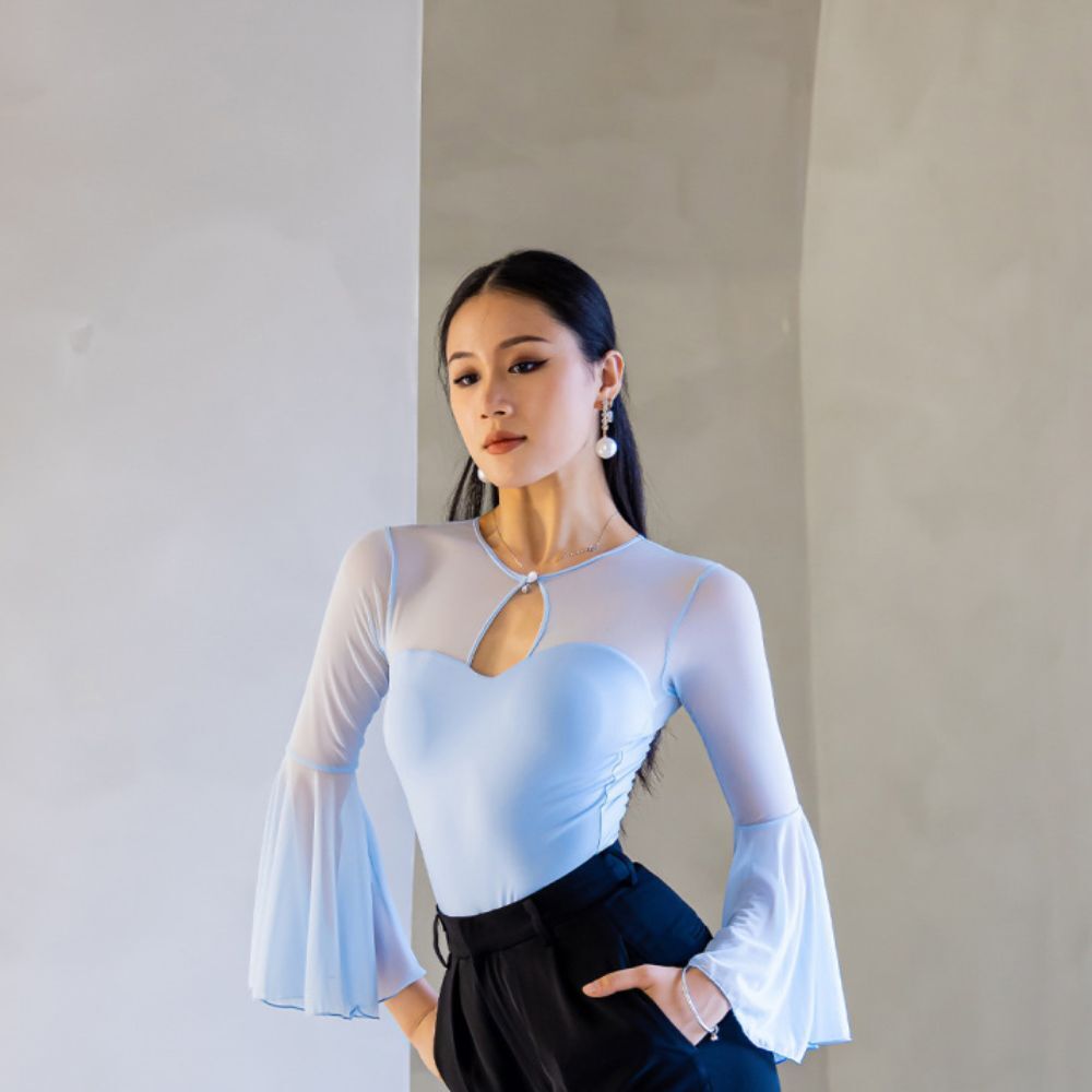 社交ダンス ドレス フロートスリーブ 衣装 レッスン着 トップス 水色 レディース おしゃれ M 長袖 寒さ対策 ベリーダンス シンプル 練習着