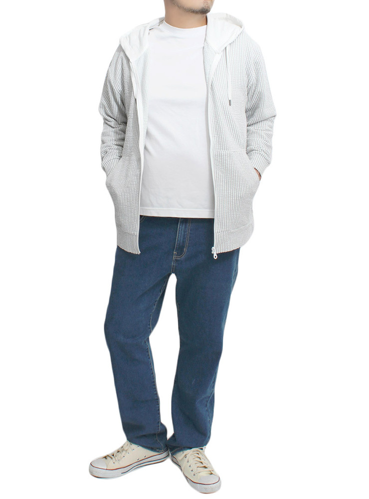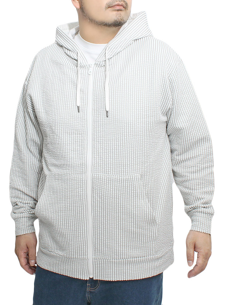 | 商品名 | 【新品】 XL ホワイト×グレー 長袖 半袖 長袖 パーカー メンズ ジップアップ シアサッカー ストレッチ サマージャケット |
