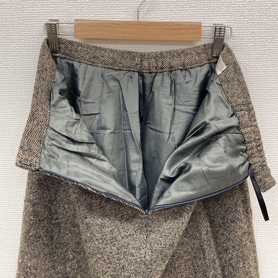 ベルドボワ(13)ロングフレアスカート*ウール混*ウエストゴム*ツイード*グレー