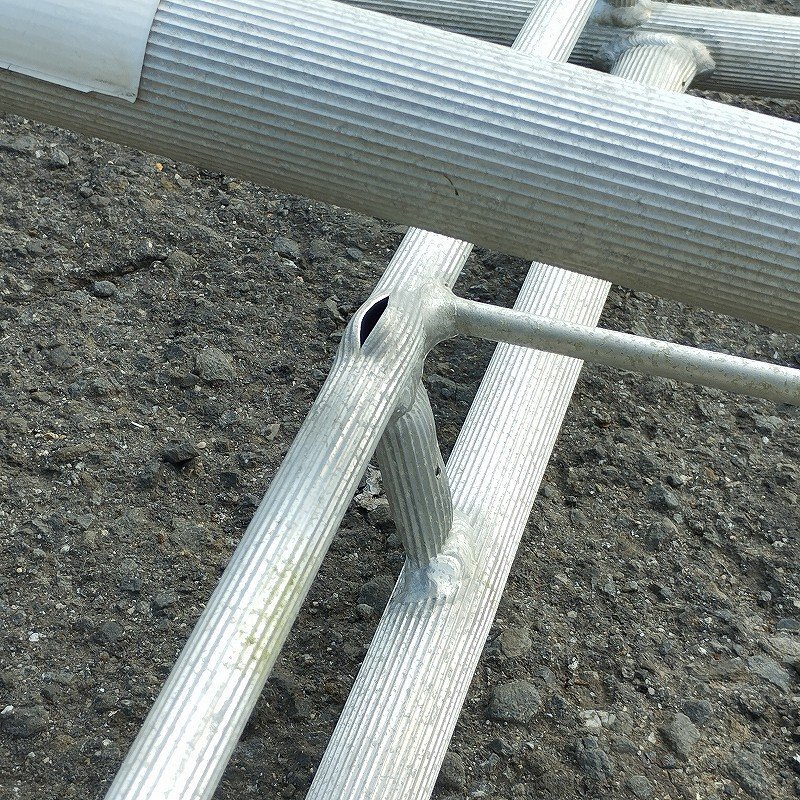 アルミパイプ部分に所々割れて開いている箇所があります。