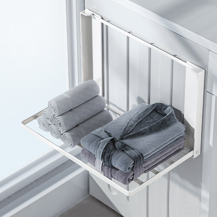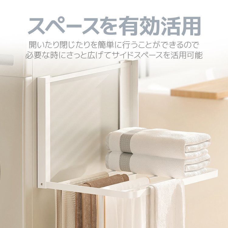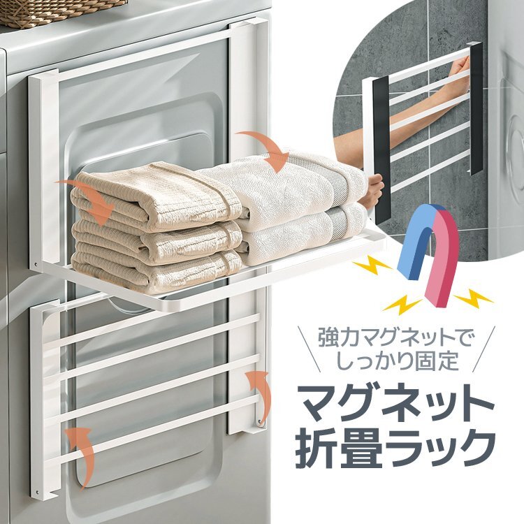 ◆マグネット折りたたみラック 取付簡単 穴あけ不要/ネジ止め不要 タオル掛け 隙間収納 タオル置き 折り畳みタオルラック 省スペース 耐荷重5kg 洗濯機や浴室に ランドリー収納 DBS484