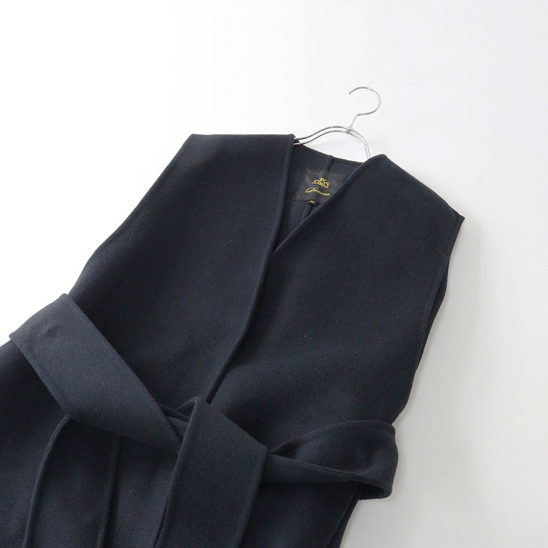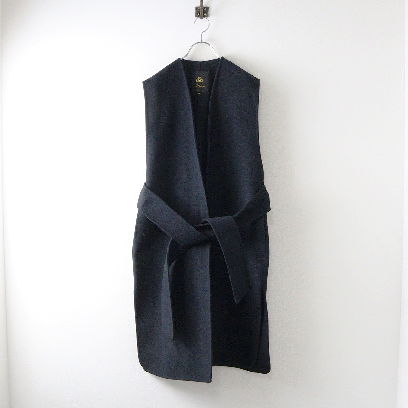 定価14.8万 ドゥロワー Drawer ウールケヌキロングジレ 36\ブラック ベスト アウター ベルト スリーブレスコート【2400014604641】