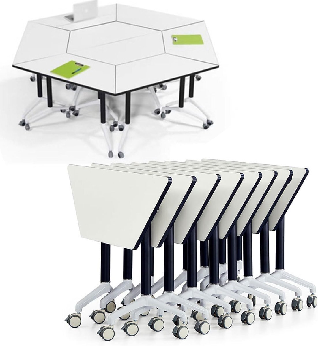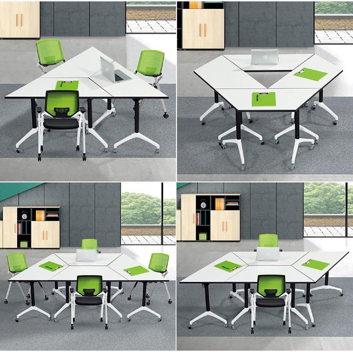 折りたたみ式会議テーブル、8個のサイレントホイール付き複合モバイルトレーニングデスク、多機能台形フリップトップミーティングテーブル