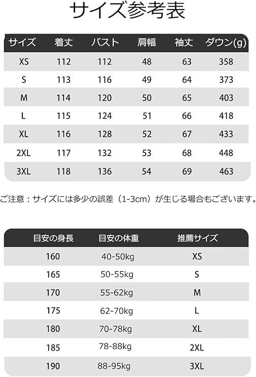 XL目安の身長と体重:180cm 70-78kg 2XL目安の身長と体重:185cm 78-88kg 3XL目安の身長と体重:190cm 88-95kg