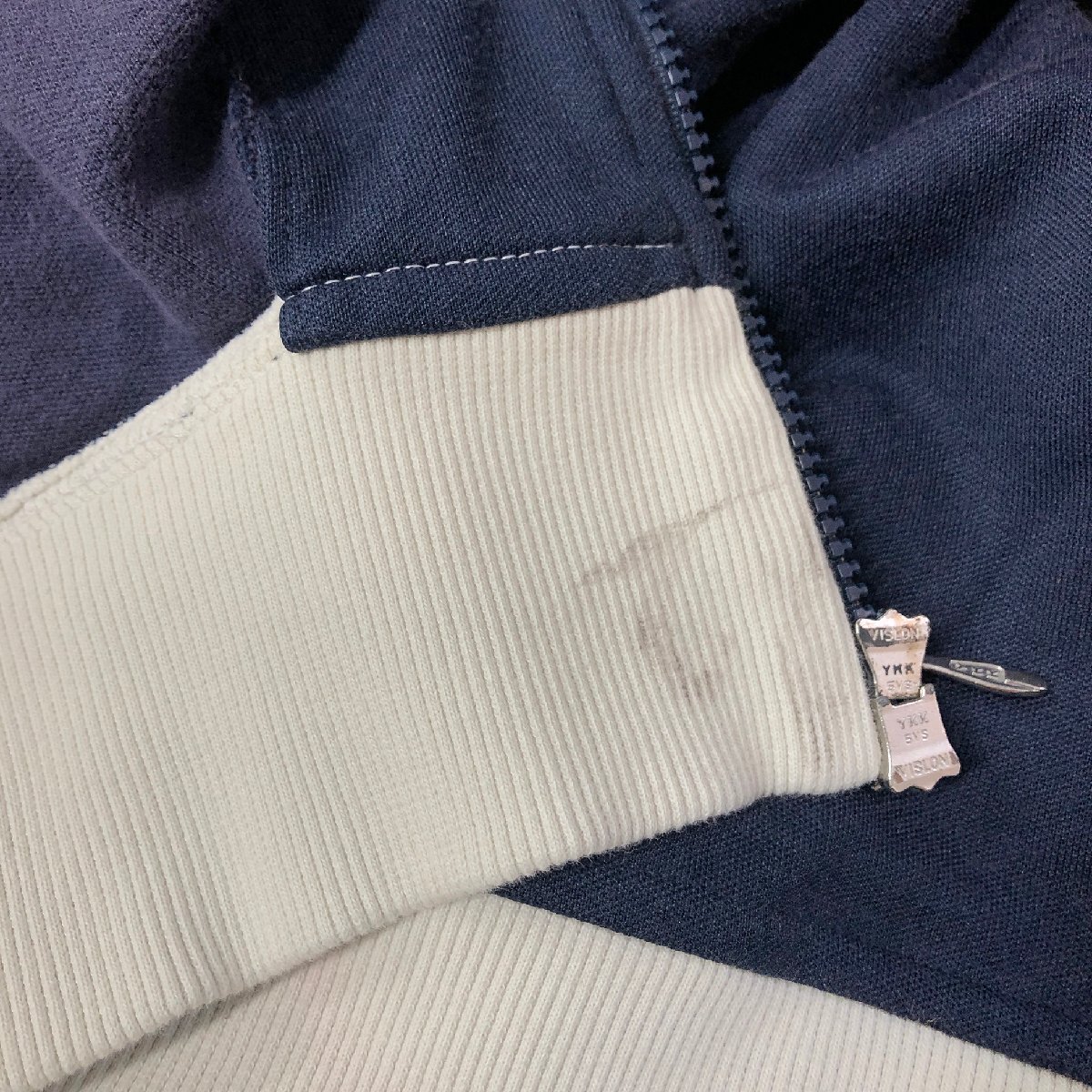 中古品です。使用感があります。全体的に毛羽立ち、腕や各リブに薄汚れがあります。