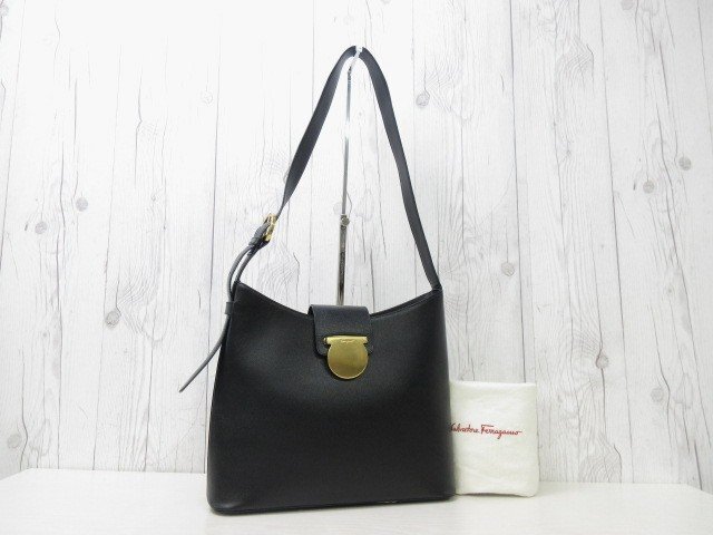 | 極美品 Ferragamo フェラガモ ガンチーニ ショルダーバッグ バッグ レザー 黒 89862 | ||