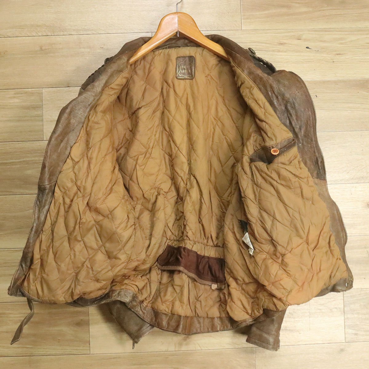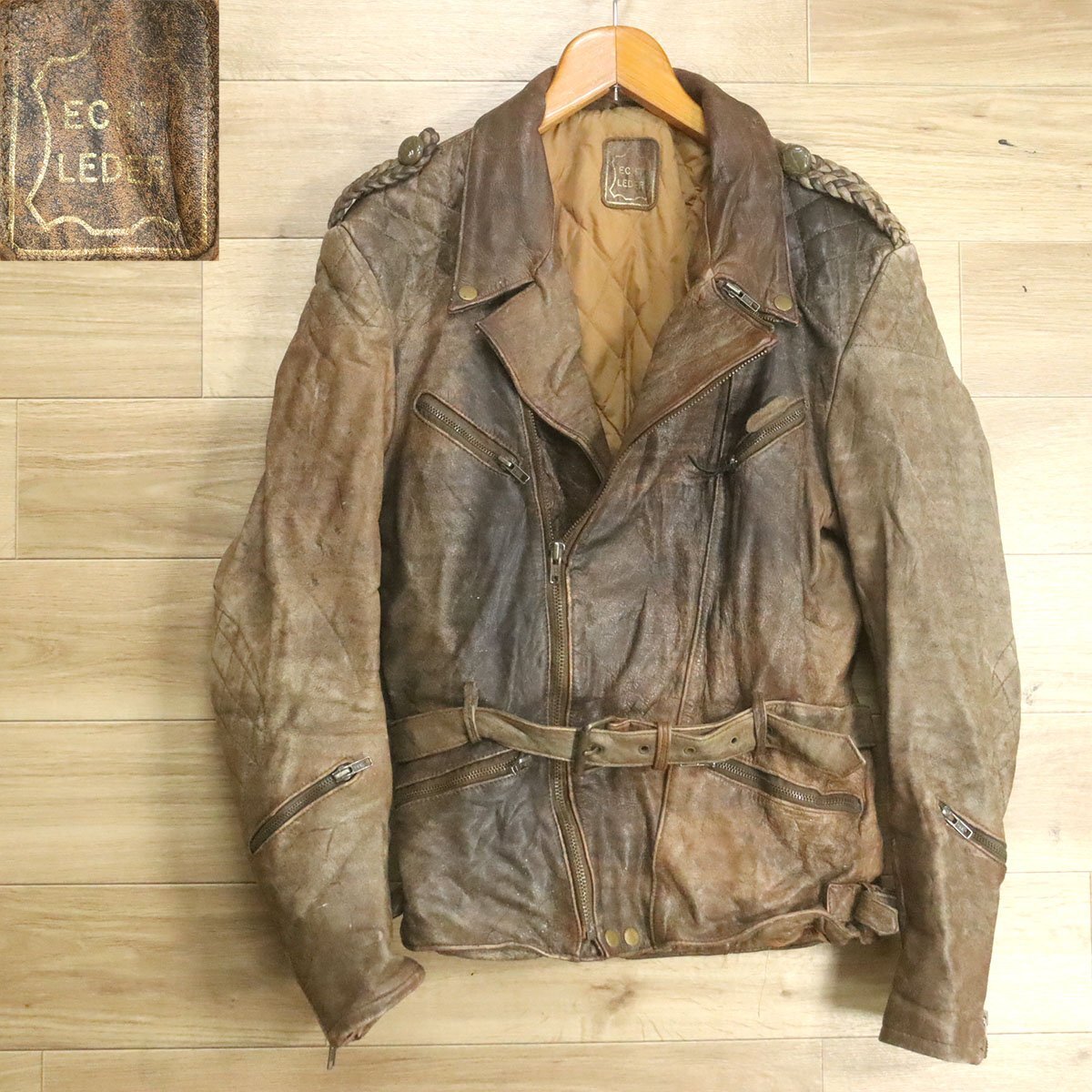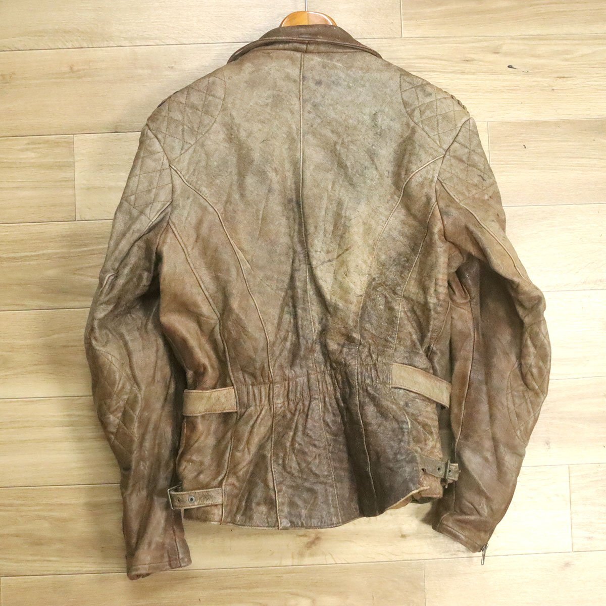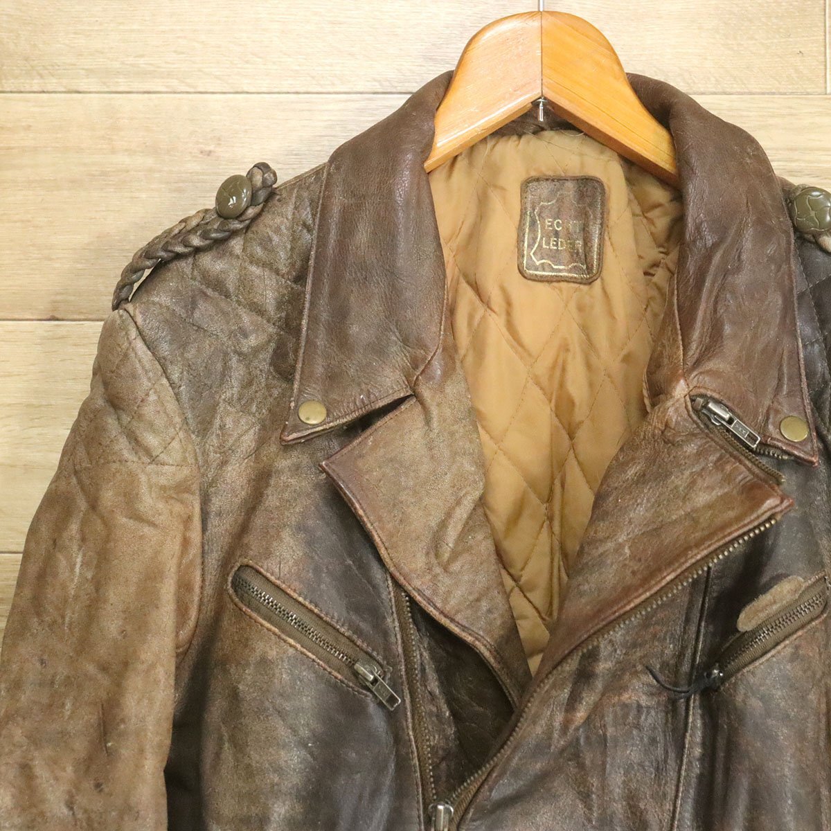 I9S/S8.18-4 ユーロ古着 RABERG ダブルライダース 本革 レザージャケット 革ジャン 皮ジャン 56 ブラウン ヴィンテージ
